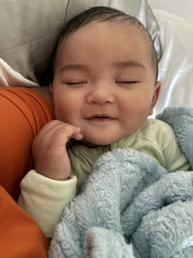 Gavriel Solaire is the sweetest, most loving baby boy. He wakes up every morning with a big smile and so much warmth. He’s very considerate—never fussy, never gives us a hard time. If we’re still asleep, he quietly waits or snuggles back beside us. He’s smart, gentle, and always laughing. The moment we say we’re going out, his whole face lights up. He looks at you with so much love, like he truly understands. He’s pure joy.