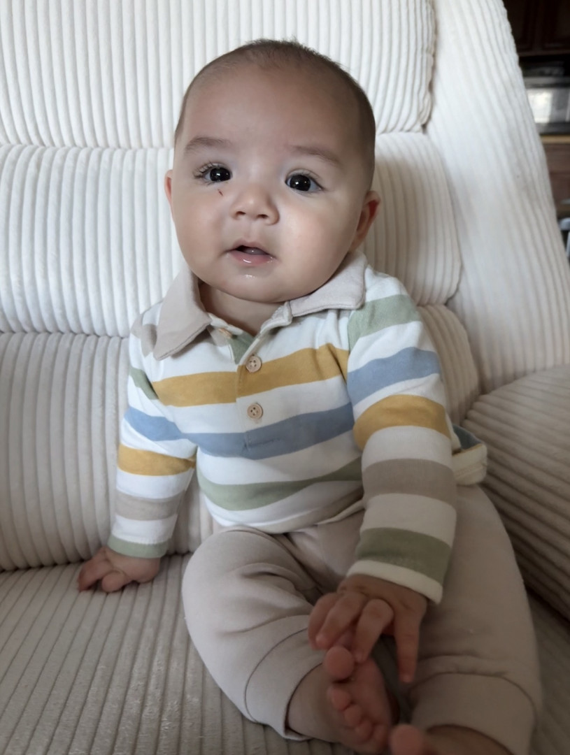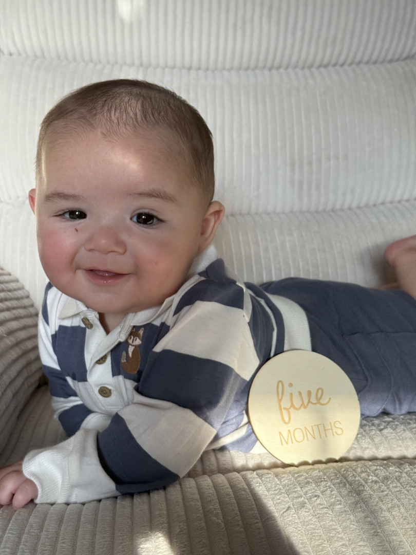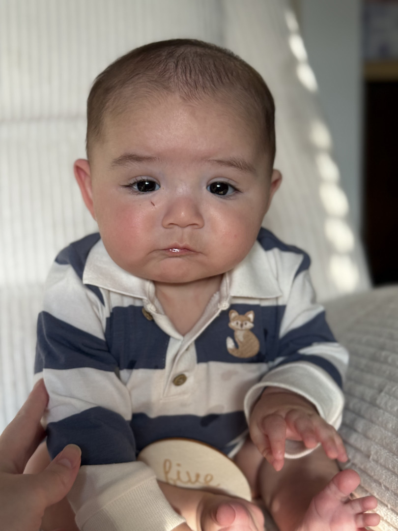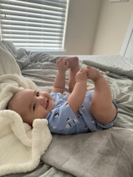 Grayson loves to smile and laugh. He is a happy baby boy. He loves music and stomping his feet. He loves finding his toes or sticking them in your face! He likes screeching or making silly noises - he loves to hear himself and can be super loud! He’s a big mamas boy and loves getting kisses. Grayson loves getting outside as long as there isn’t too much sun in his face 🤣