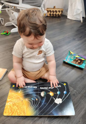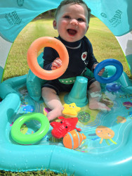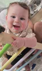 What are Grayson's favorite activities?Grayson is already a foodie and loves trying new foods. He likes to clap his hands and roar like a lion. He's a little water bug, so he loves playing in the water and splashing as big as he can. He loves spending time with his dog and laughs anytime she's around!