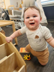 Grayson is a busy body with places to go! He has a lot to say and makes sure you know about it! He's always so happy and doesn't know a stranger! He loves everyone he meets and is never shy about giving out smiles! He is curious about everything and is very persistent when he has his mind set on something.