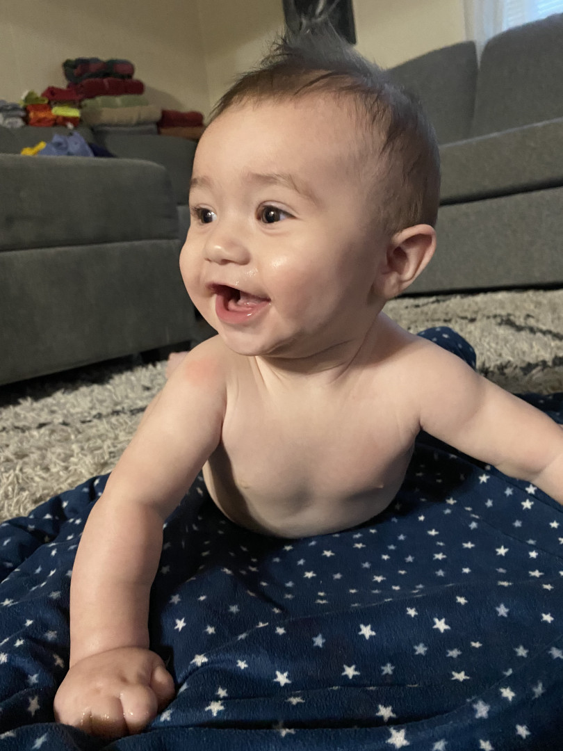 Grayson had a rough start let me tell you briefly, from the start he was a fighter, welcomed to the world being in the nicu he sure is all smiles and laughs now. He loves playing peekaboo, he loves exploring, people watching and tummy time. He is super calm & such an easy going baby. With worldly struggles and hard times not knowing what next, He truly knows how to just light up any room, you just can’t have a bad day when he is near.