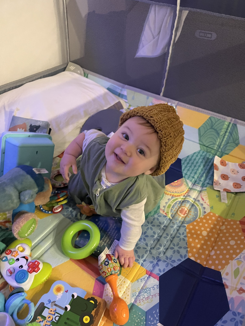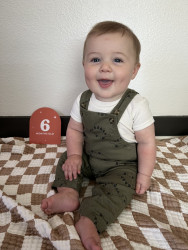 Halen lights up the room, everywhere we go. any new encounter with anybody, rather that be with people, or animals- he always has a smile on his face, and soaks in all the well deserved attention. He started crawling at 5 months and is now pulling up on furniture to stand on his own-so he is very very driven, and i believe hes going to excel in all aspects of life