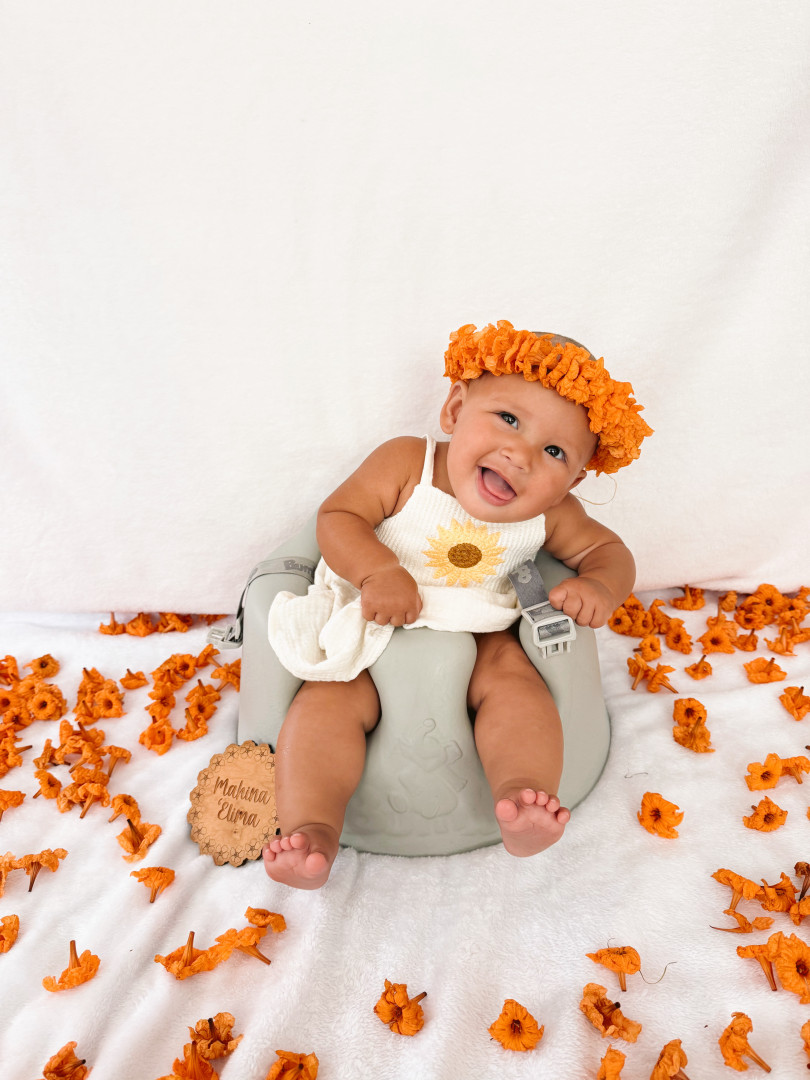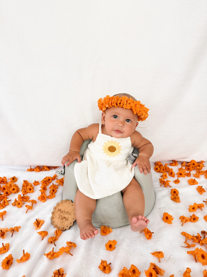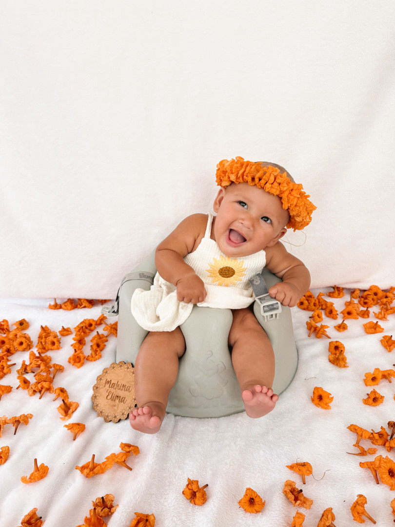 She's very curios and intrigued by what is going on around her. She shows interest into learning and observing her surroundings and simple things like singing her "If you're happy and you know it" or letting her sit outside to look at the landscape brings her absolute joy. She laughs uncontrollably when she plays with dogs or when she gets tickled. She loves when people talk to her, and sometimes getting her to stop talking seems impossible. She's a happy, soulful, curious, and joyful baby.