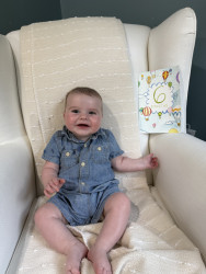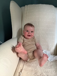 What are Halsey's favorite activities?Halsey is happiest in or on the water. He loves bath time, swim lessons, and going out for sailboat rides. At home, Halsey loves to play with his musical instruments and listen to mommy and daddy sing along to his favorite songs. Halsey also enjoys eating oatmeal and sweet potatoes and having his two fur siblings help with clean up! Halsey also enjoys being an airplane, and flying over mommy and daddy's bed.