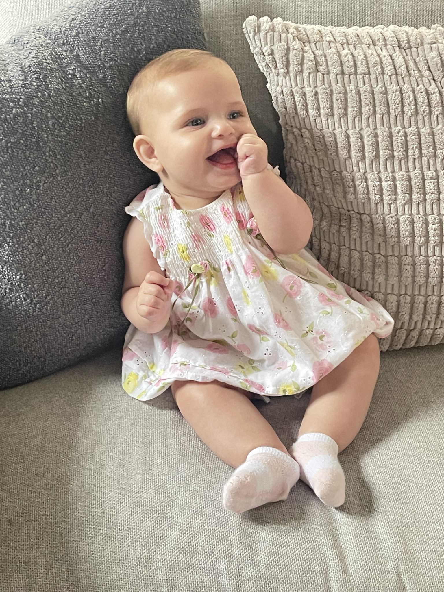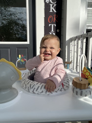 Harlow has always been bright-eyed and full of curiosity, and now she’s blossomed into a little social butterfly. She thrives on being part of the action—always eager to be in the mix, surrounded by the laughter and love of family and friends.