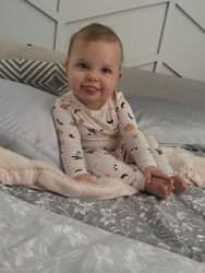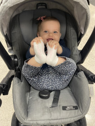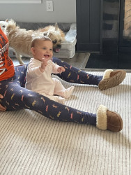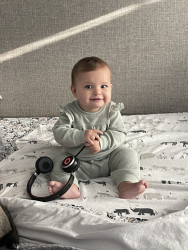 What are Harlow's favorite activities?Harlow’s days are filled with joy—dancing around the house with her sister, giggling at the silly things her dogs do, playing in her activity center and doing tummy time as long as someone’s next to her the entire time and taking long, peaceful walks with her moms. These everyday moments are simple, but they’re the heart of what makes her world so special.