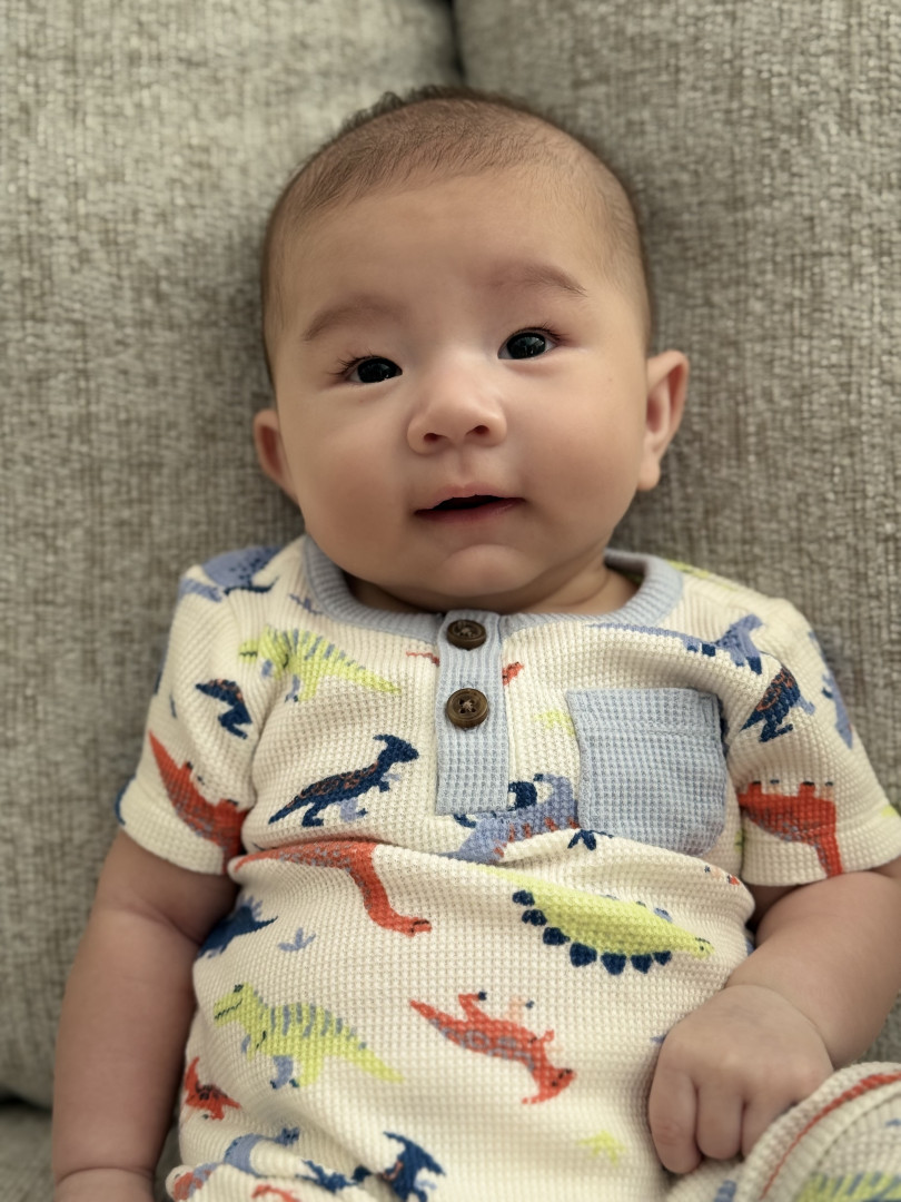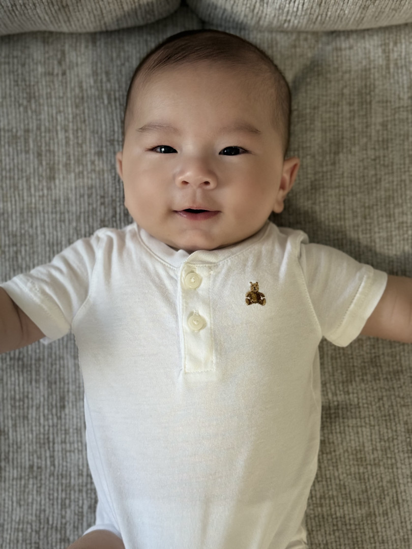 He’s like a ray of sunshine, brightening our days with his presence! He’s been making the sweetest little sounds, his own special way of communicating with us. When you respond to his cooing, he lights up a smile and lets out the most adorable giggle, making him even more irresistible.