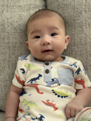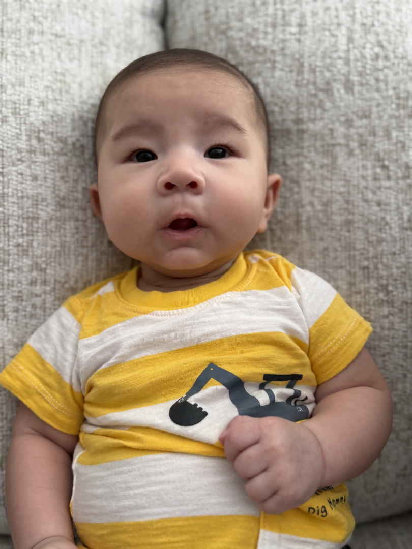 What are Hayes Kristan Polinag's favorite activities?He started rolling over and absolutely loves it when we read his books to him, especially as he gazes at the colorful pictures. Playing with his toys while listening to his favorite music is another one of his favorite things, it’s such a joy watching him engage with the world around him! He’s constantly exploring his world and growing up so fast right before our eyes!