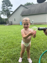 What are Hazel Bahrns's favorite activities?She loves flipping through books, playing outside, trying to swim, playing in sprinklers, meeting new people, and snuggling with momma. She also loves to play hide and seek games and watch Ms. Rachel and Blippi. We live away from family, so she always loves visiting them and she’s usually sad to leave. She loves her family and friends so much. Her doggie, Barley, is also one of her best friends, and she loves playing with him.