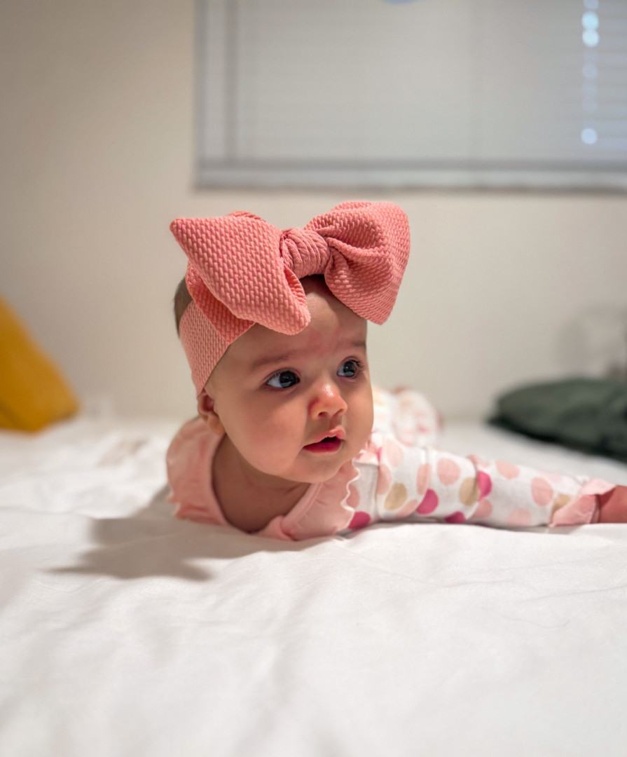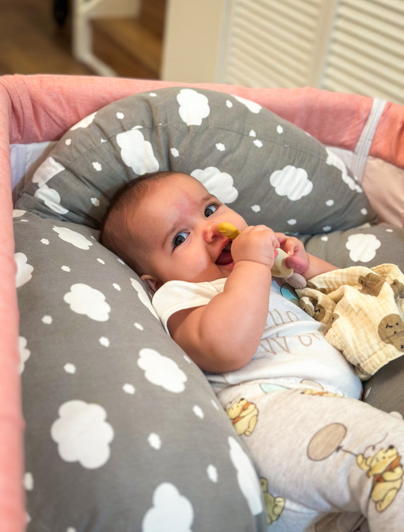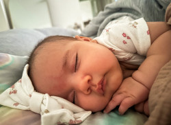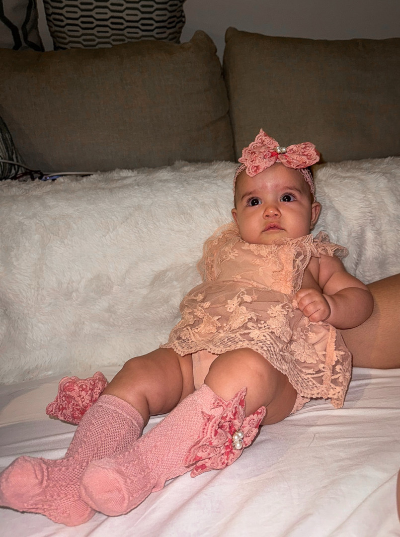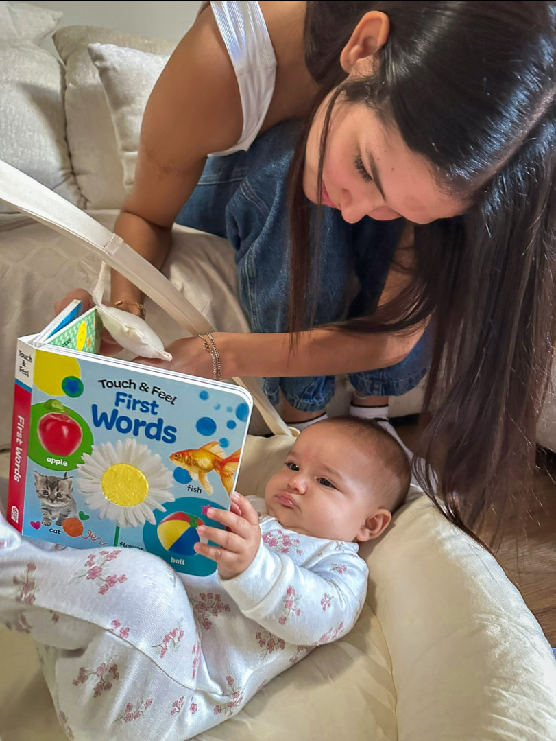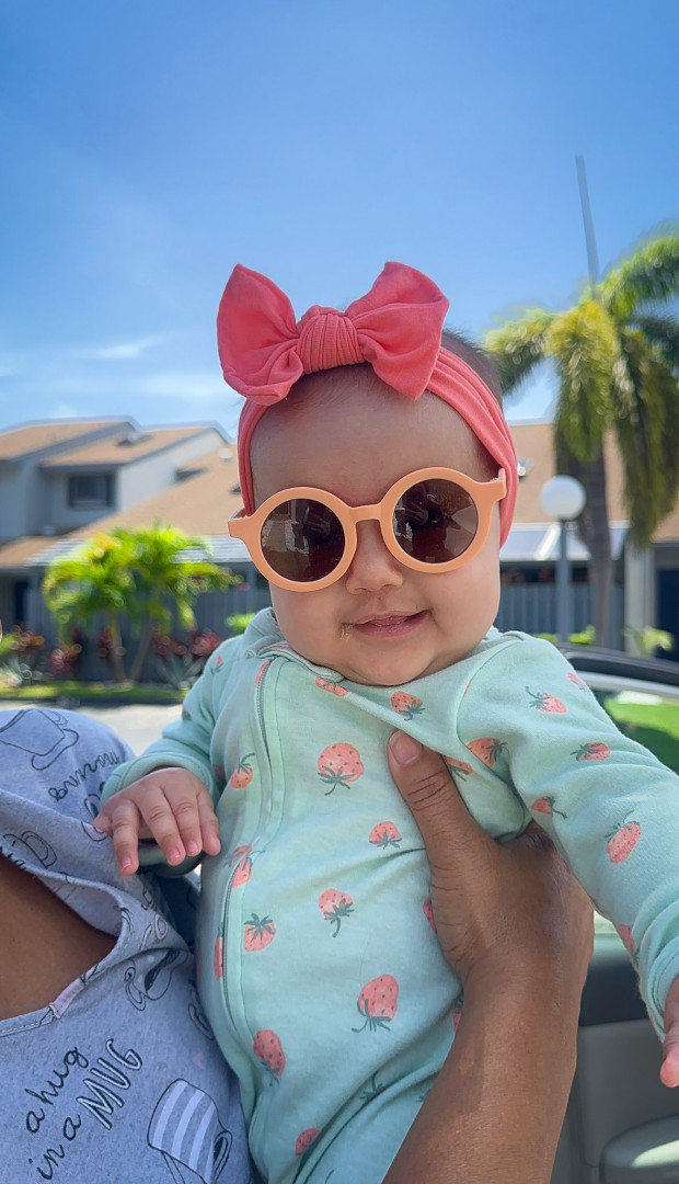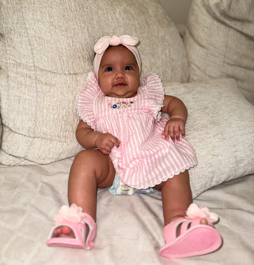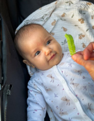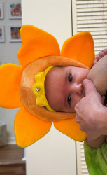 What are Helena's favorite activities?Helena loves greeting ceiling ventilators and even the trees that remind her of them. She rides in her stroller on her tummy, curious about every sight. Music makes her shine, especially when she coos and wiggles to Lilo and Stitch. She babbles as if she’s trying to join the conversation, giggles at herself in the mirror, cuddles her furry sisters Nala and Cloe, adores bath time and baby foot massages, and loves watching mom and dad cook since they are chefs.