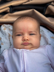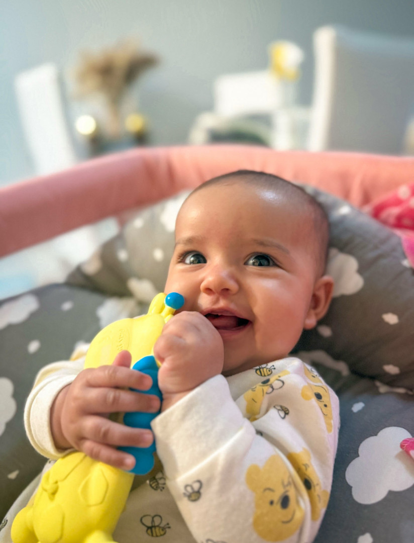 Helena shines wherever she goes! She is charismatic and joyful, always smiling and full of energy. At the same time, she has the sweetest calm side, especially when it is time for her nap with her little eyemask, bringing peace and charm to everyone around her.