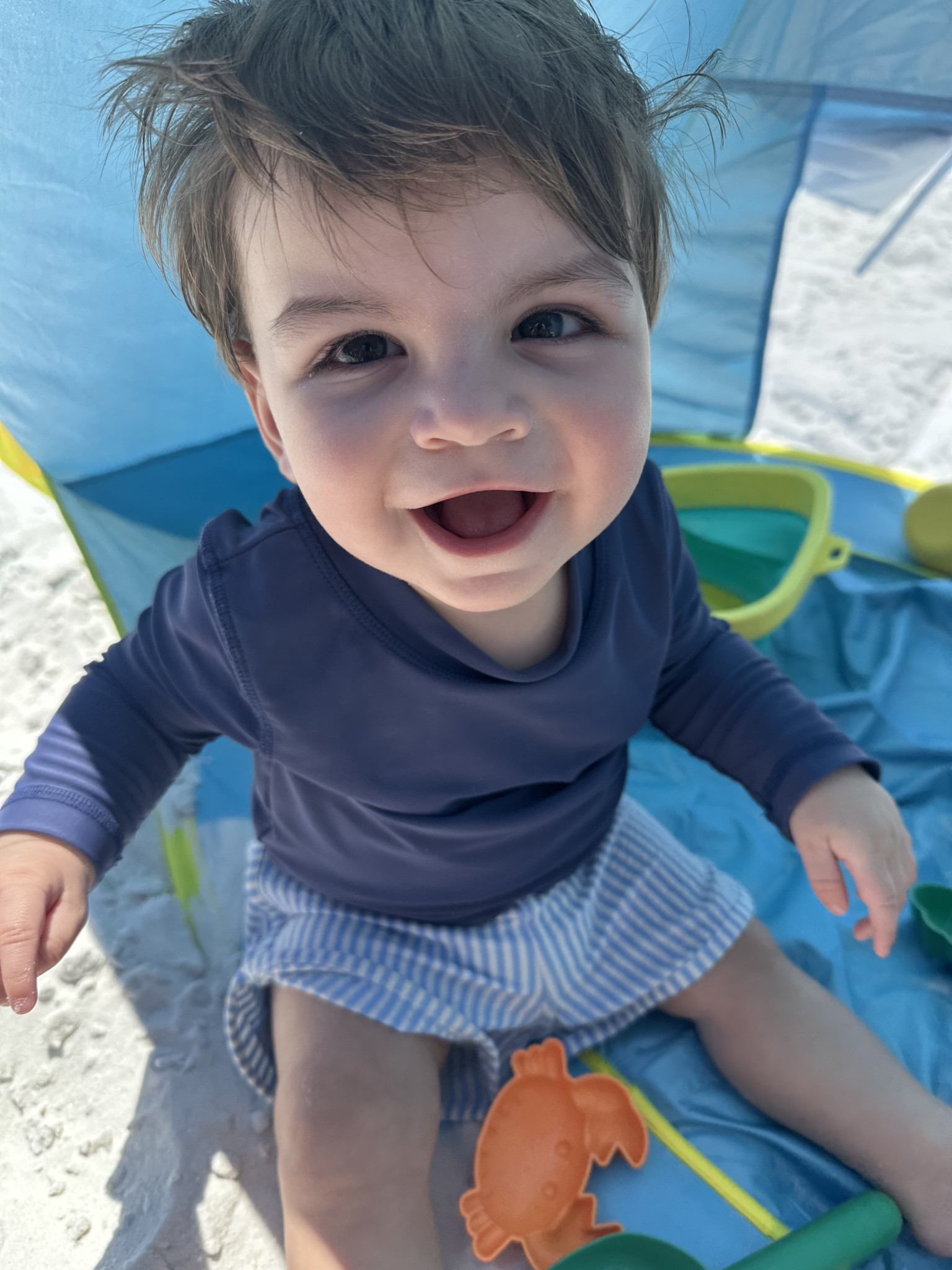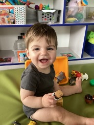 Henry is the smiliest, giggliest, happy little boy there is. With his big smile and full head of hair - everyone who meets him falls in love. His flirty personality helps!