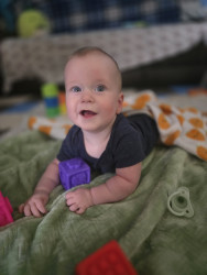 Henry has the brightest personality. He’s funny, playful, and absolutely loves to laugh, especially when everyone around him is laughing too. His giggles are contagious, and his belly laughs are the best. Always full of energy, Henry brings life and excitement wherever he goes, making every day feel a little more fun just by being himself. He's the biggest social butterfly and just loves people. I’ve never seen a happier baby.