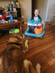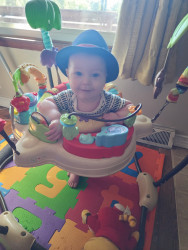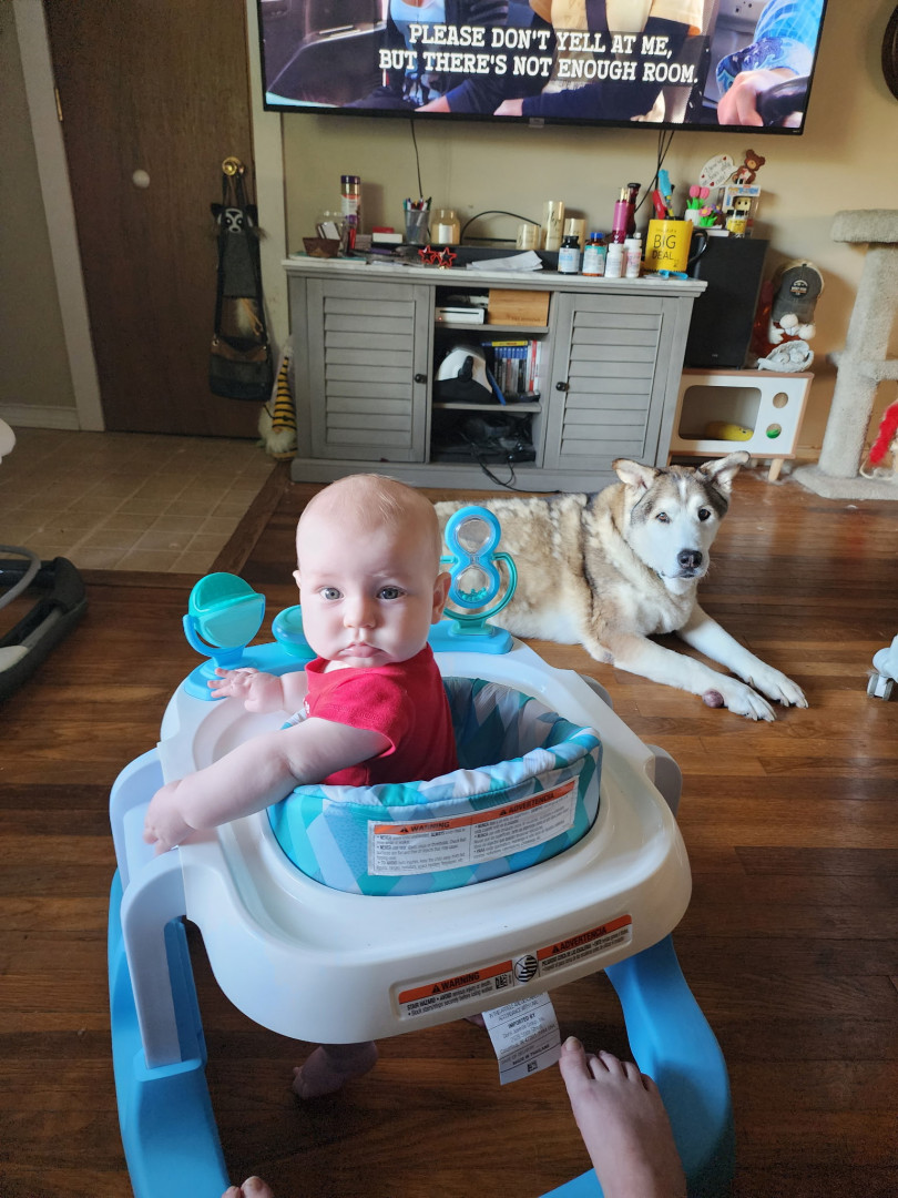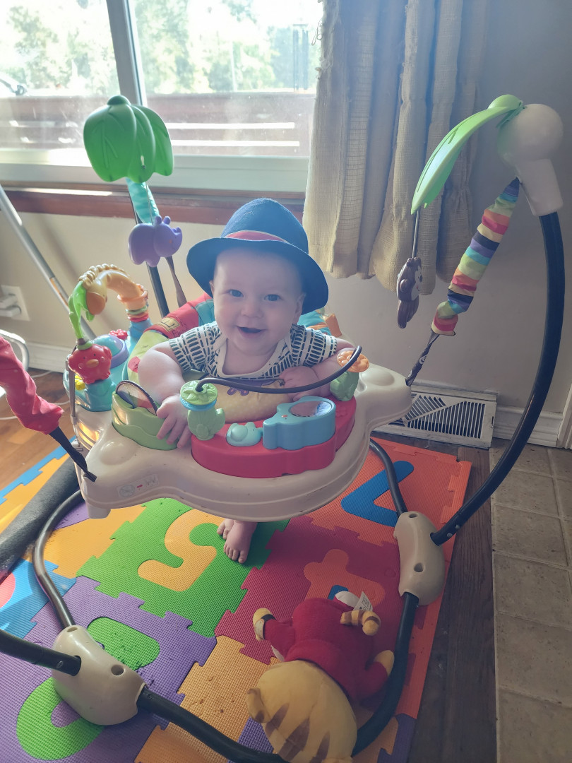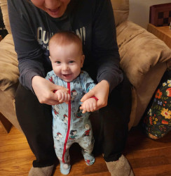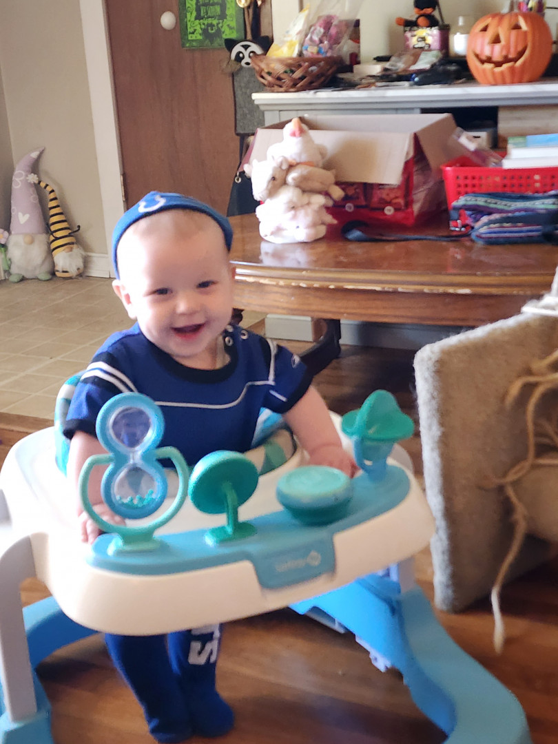 What are Henry Hudson's favorite activities?Henry's favorite activities include using his walker to chase our dog, Buddy Love, reading books, watching Daniel Tiger, swimming, taking car rides to the park, and meeting new people. Bath time is one of his favorite times of the day after exploring new foods with mommy and daddy. Henry is a super strong baby and will be running before he walks in no time.