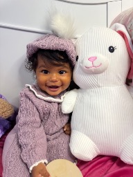 Hermione has a bright personality. She loves to light the room with her big bright smile she loves to be around people and give big hugs.