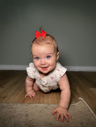 Hunter Mae is constantly smiling and giggling! She is always happy to share her toys and loves to explore new ways to make everyone laugh!