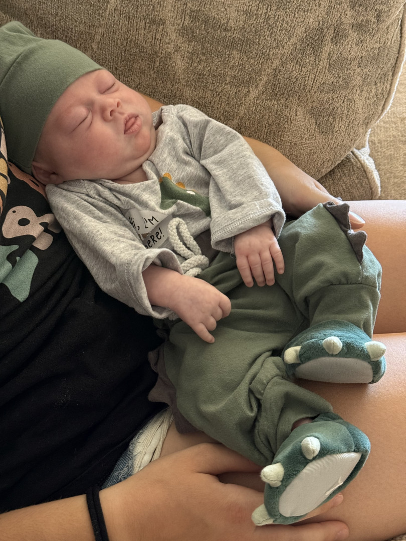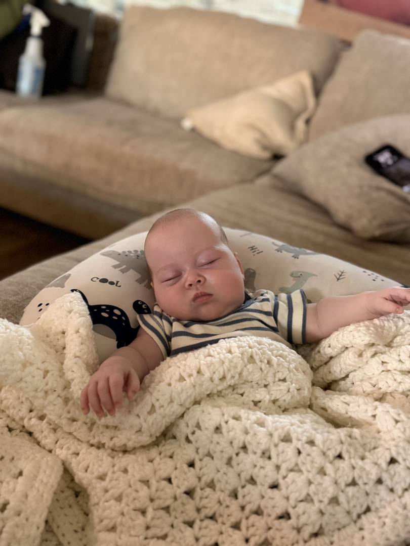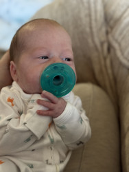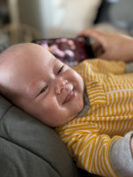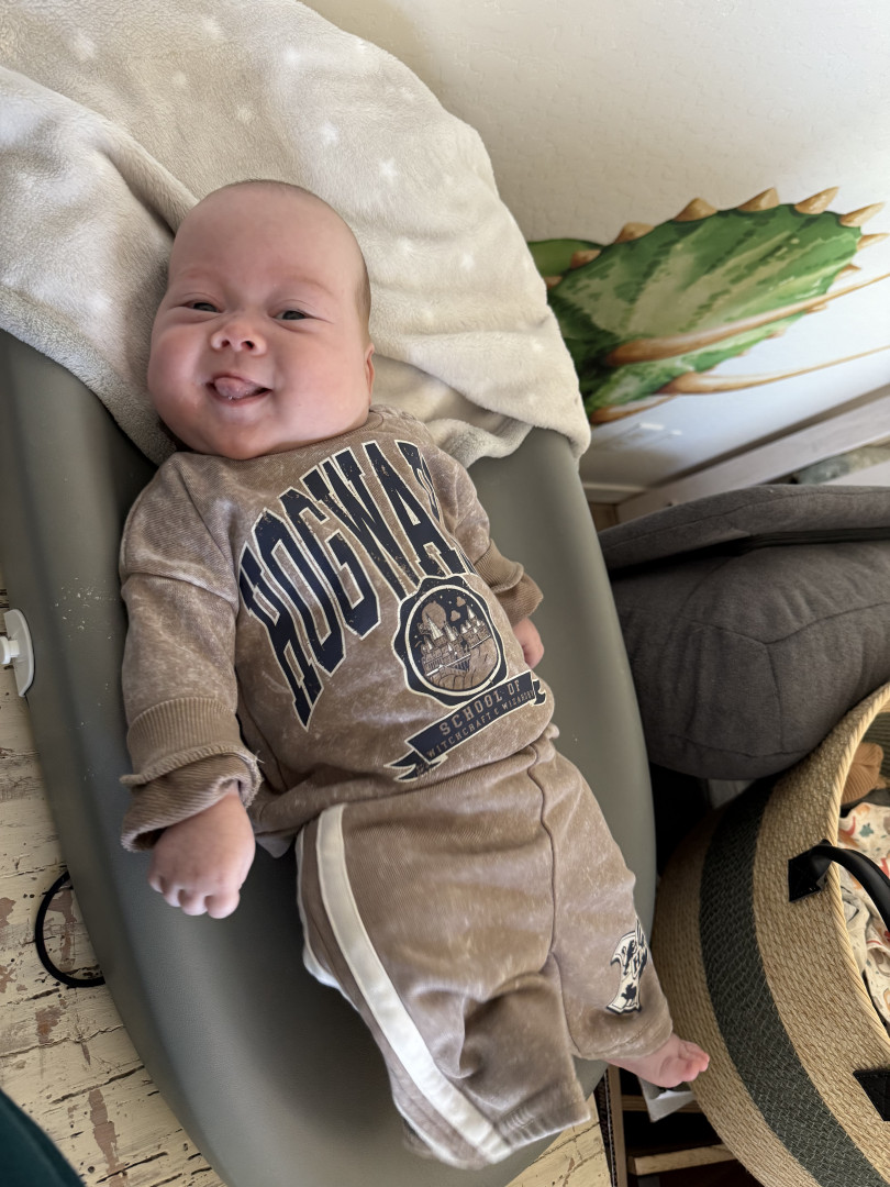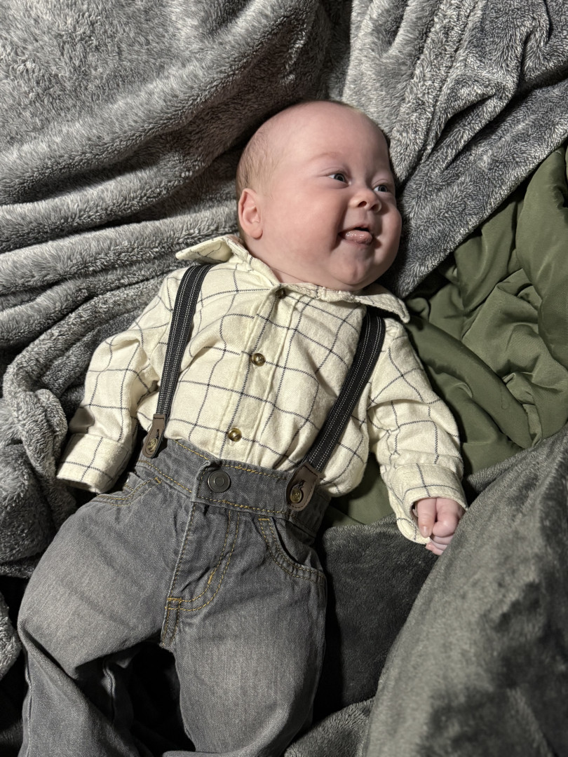 Jackson is a big cuddler and mama’s boy. He’s just now starting to notice things around the house and is fascinated by window blinds and ceiling fans currently!