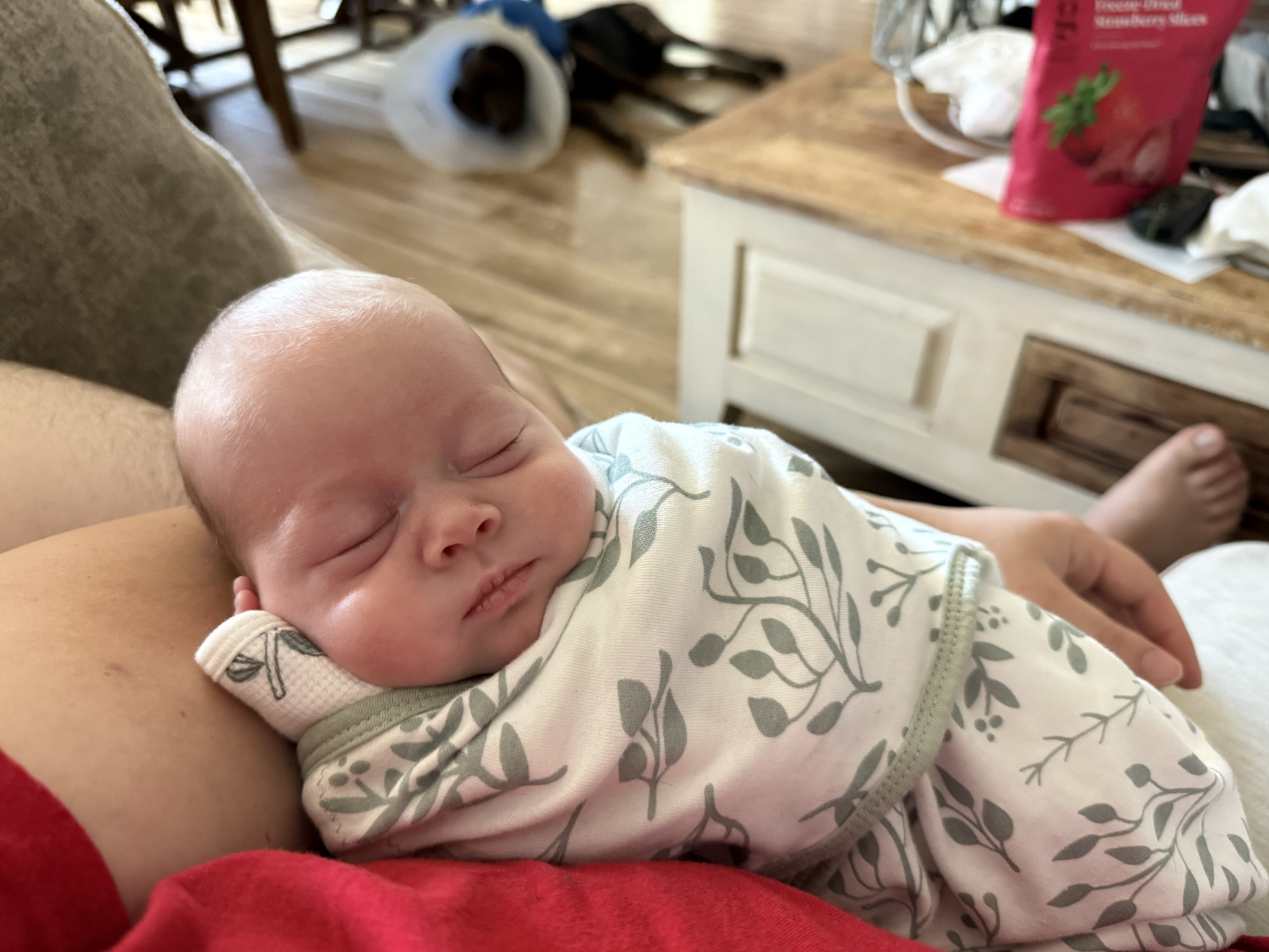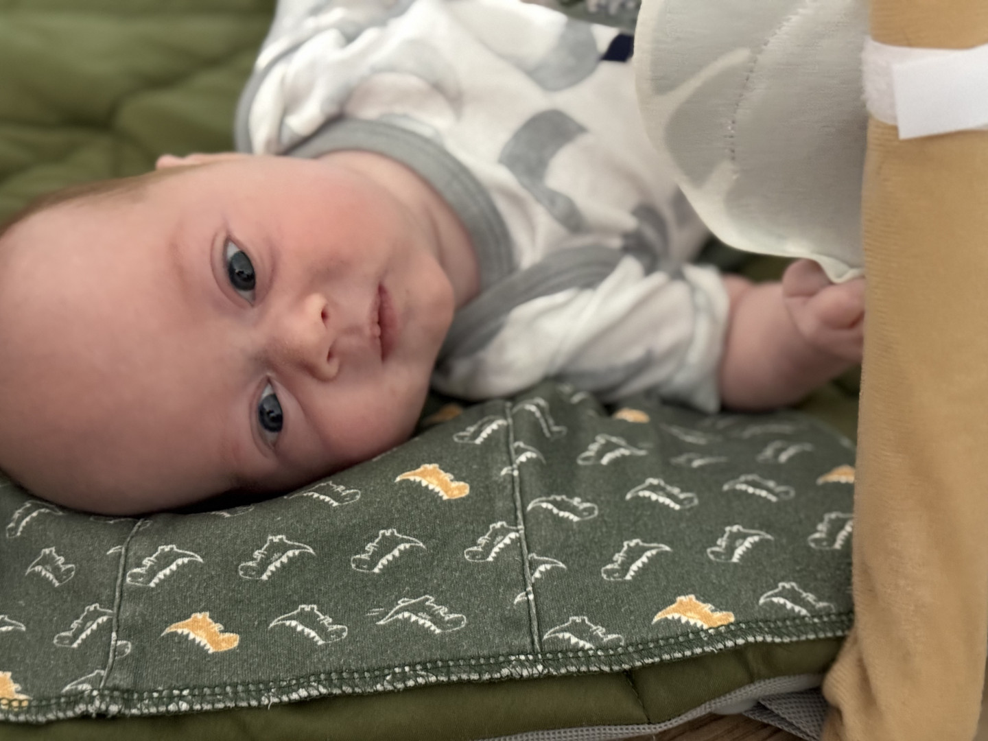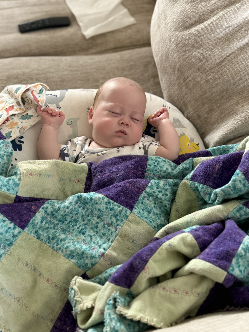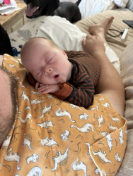 Jackson is a big cuddler and mama’s boy. He’s just now starting to notice things around the house and is fascinated by window blinds and ceiling fans currently!