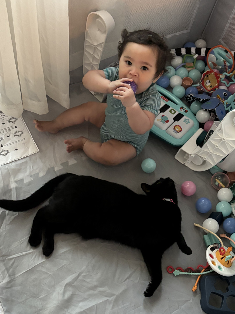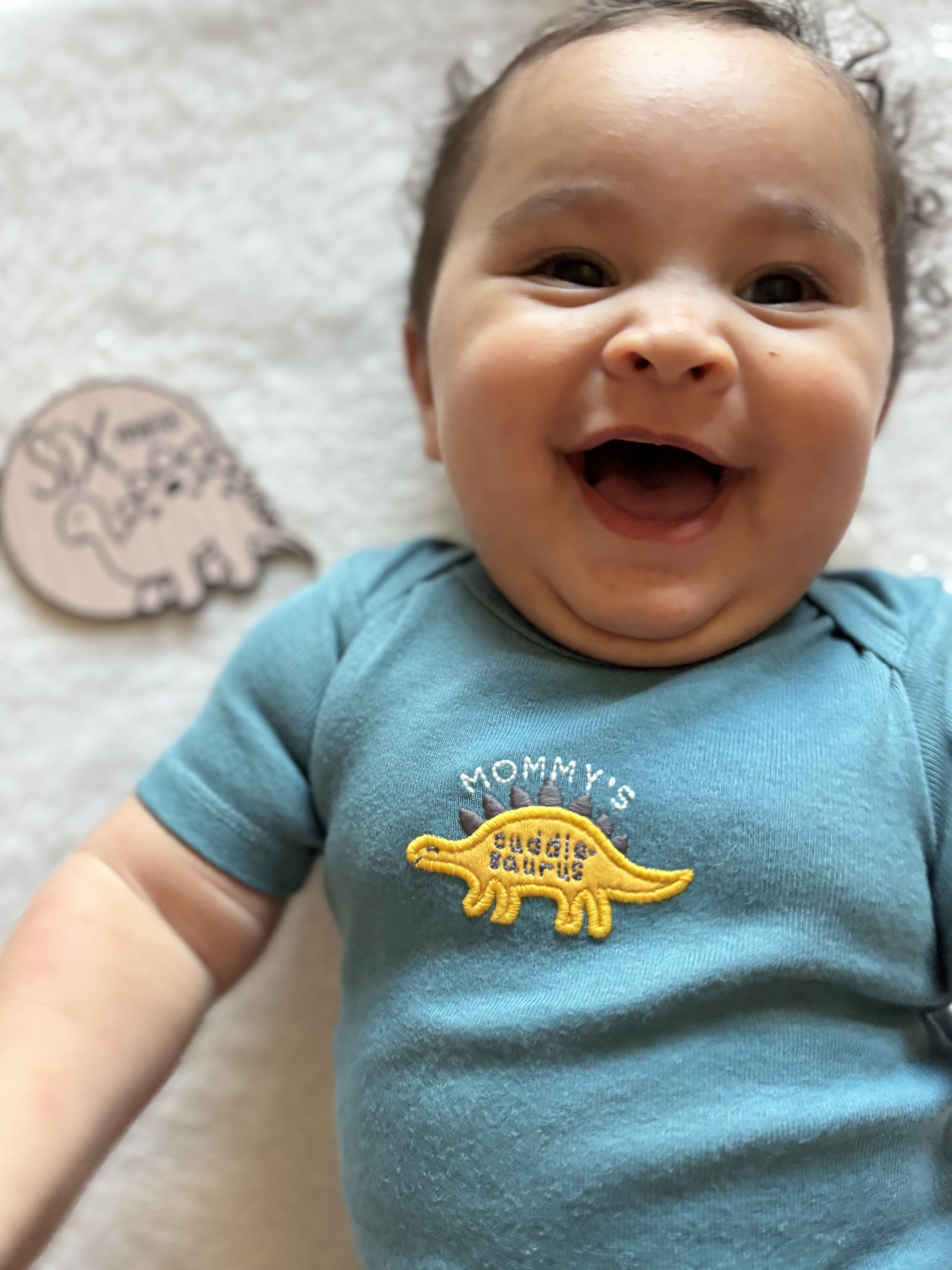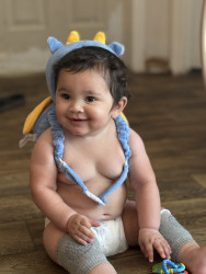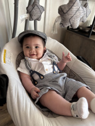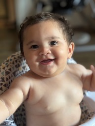 He’s the happiest baby and always smiling. Even when he gets upset he’ll smile to let you know he’s good. He loves everyone he meets!