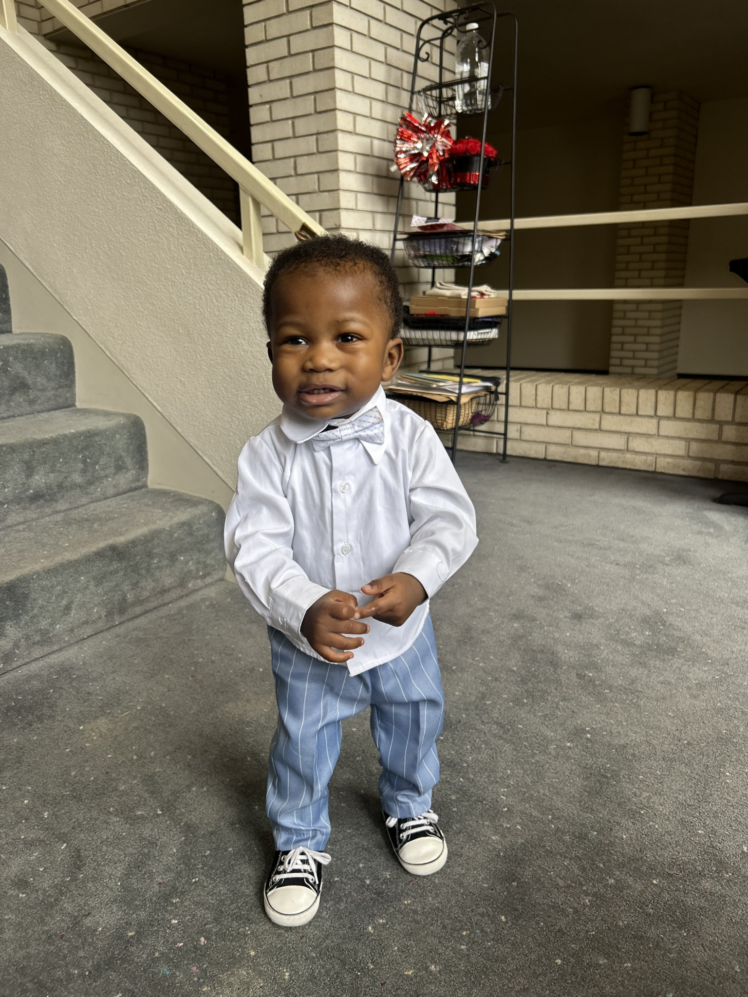 He is a happy, playful, loving child who loves entertaining everyone around him. Play a song near him and watch him dance! His laugh is impossible to ignore, and he always steals the spotlight wherever he is.