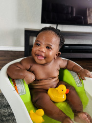 What are Jamal's favorite activities?Jamal’s a little adventurer with a passion for fun! He delights in water play, splashing joyfully during bath time and eagerly awaiting his upcoming swimming lessons, where he’s sure to shine. On land, he’s just as vibrant, exploring his surroundings, clutching his toys, and soaking up new discoveries. Jamal also loves cozying up to rhymes and audiobooks, his curious mind dancing to every word. This spirited, water-loving explorer is ready to win hearts!