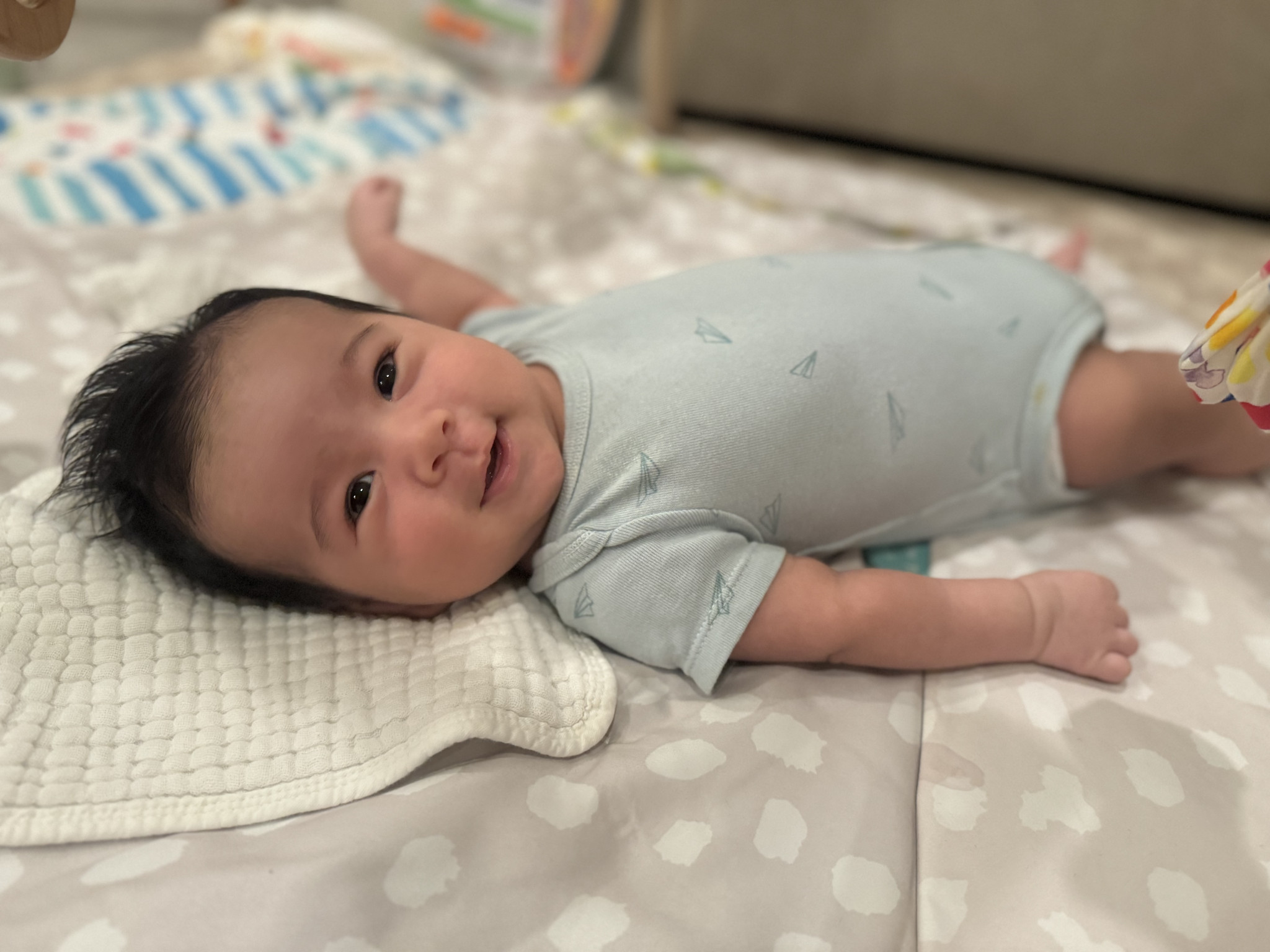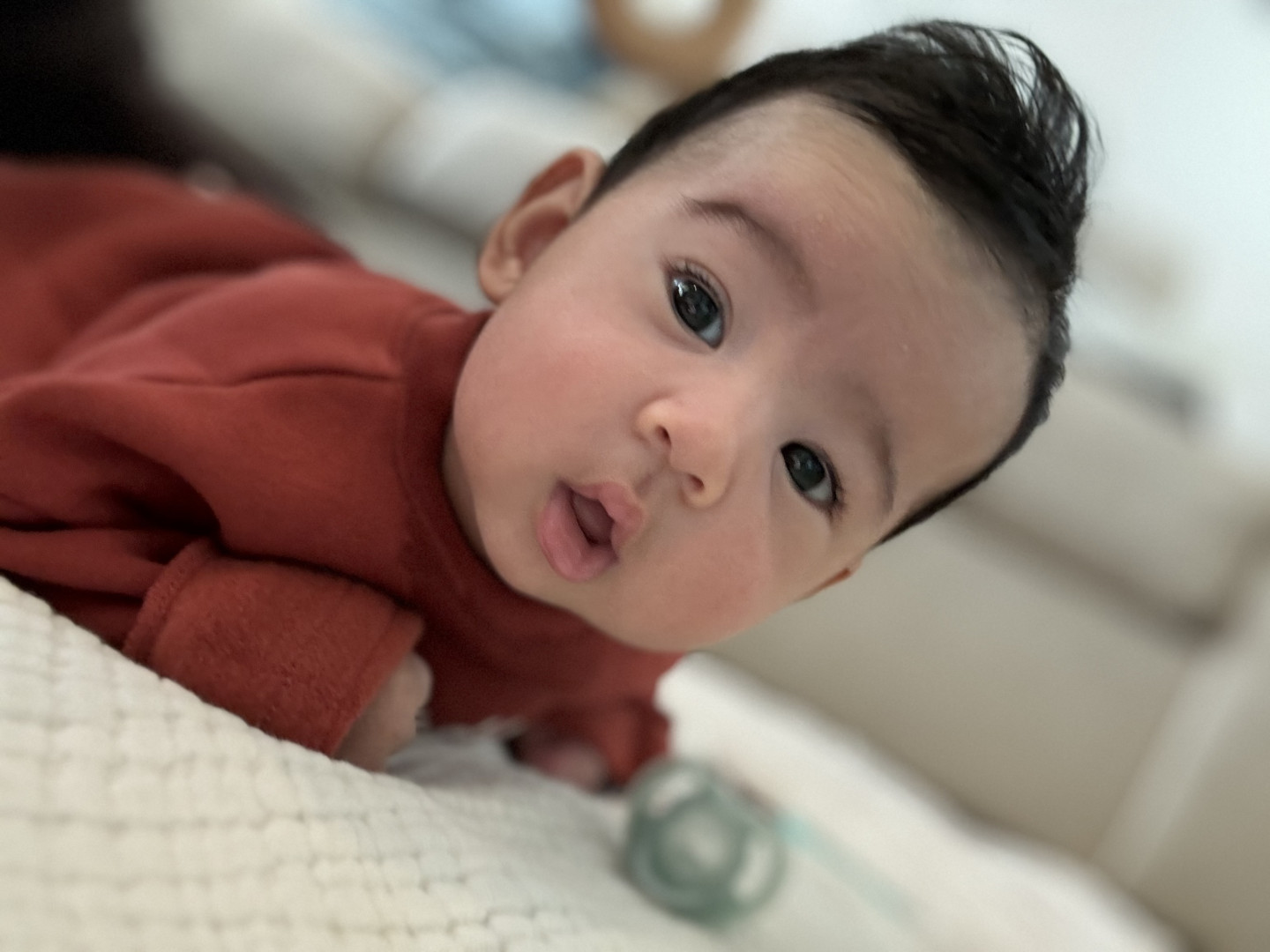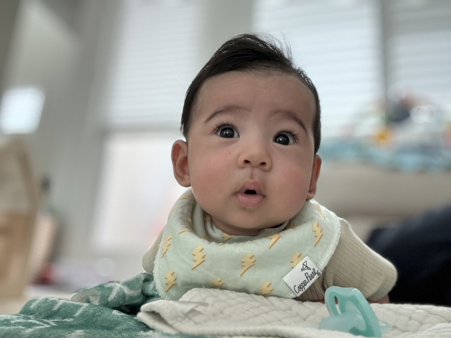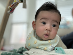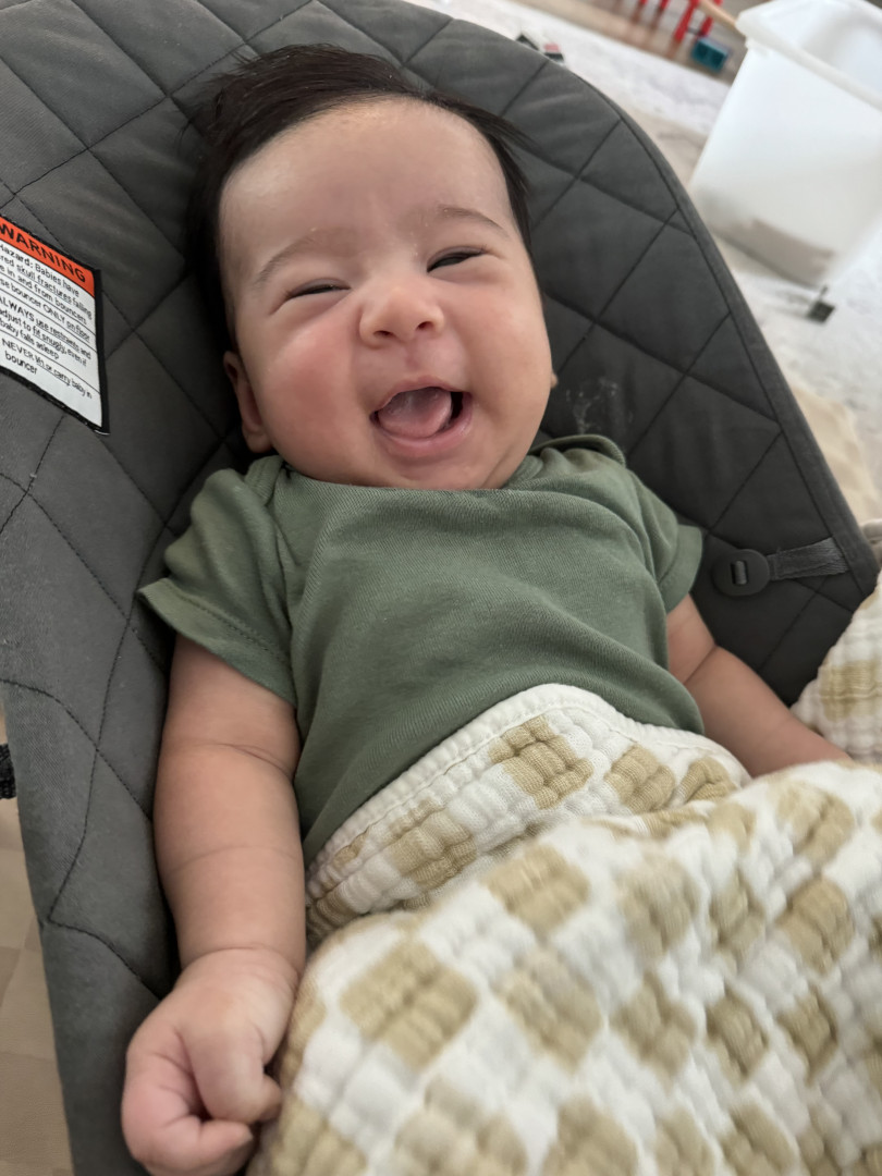Baby James is calm and collected…with the one exception of when he is hungry! :) He is constantly taking in his surroundings (which mostly consists of his rambunctious big bros). JJ is a sunshine boy, and lights up the room with his smile, coos, and laughs!