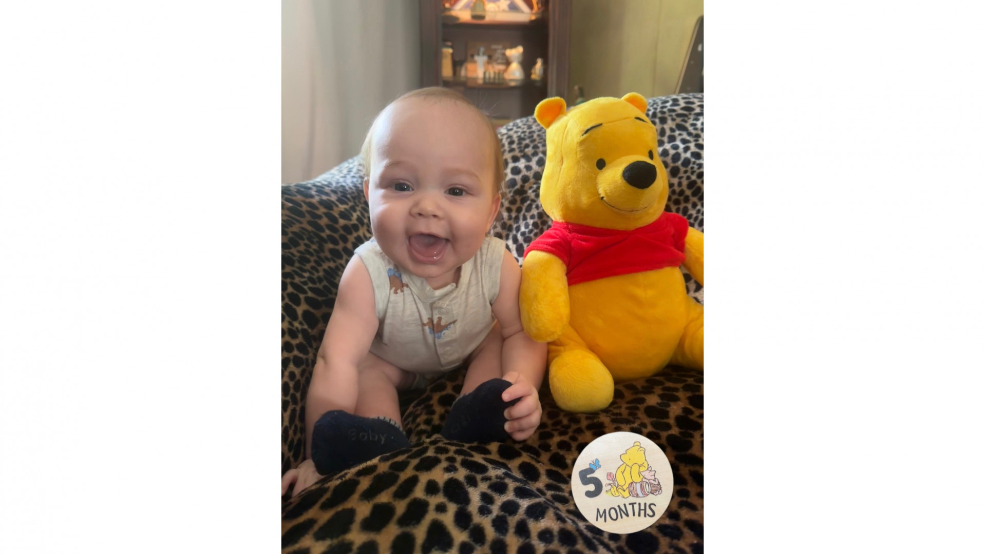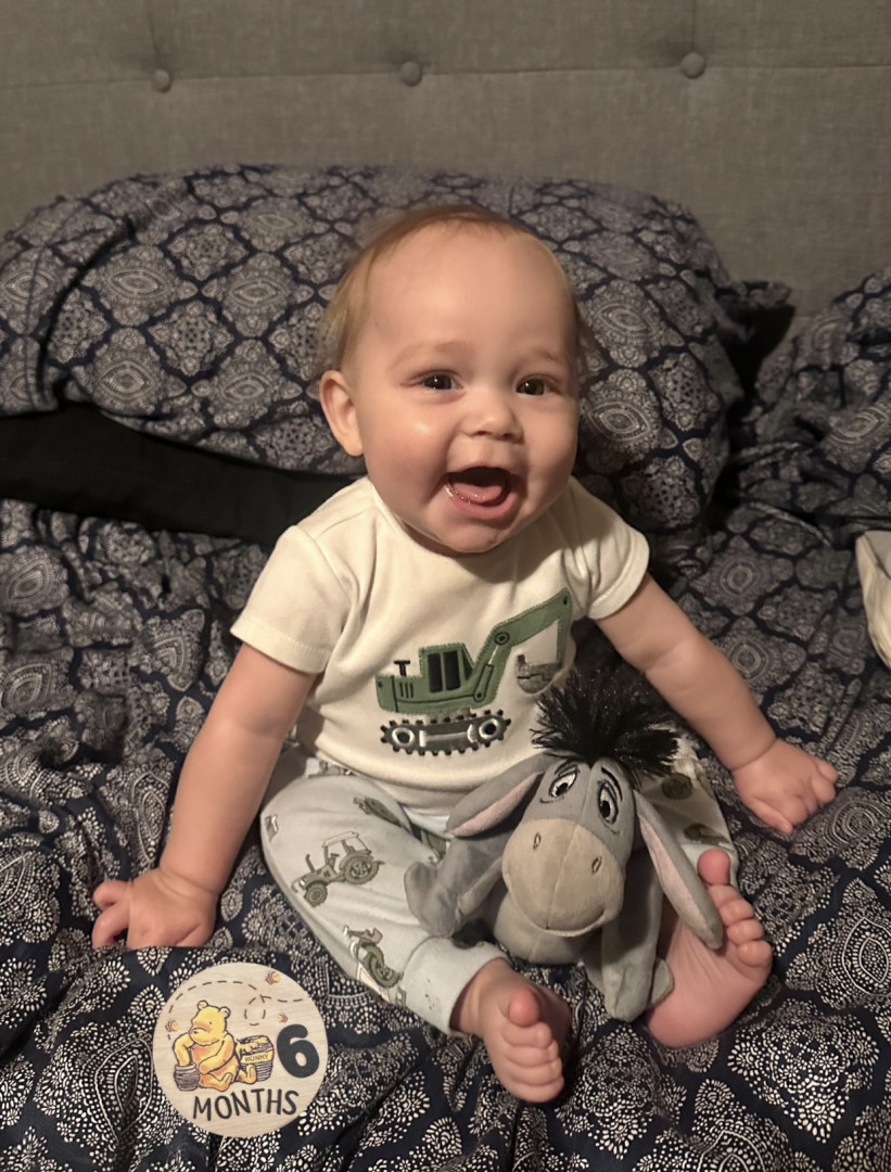 What are Jaxton Taylor's favorite activities?Jaxton’s days are filled with the cutest adventures! π He loves rolling around with his best buddy Pooh Bear, splashing and giggling in the pool, and playing endless games of peek-a-boo that light up his smile. πΆβ¨ Watching mama cook is one of his favorite shows, as he sits with curious eyes and happy kicks. And of course, he’s practicing sitting up like a big boy—determined, proud, and oh-so-adorable every step of the way! ππ