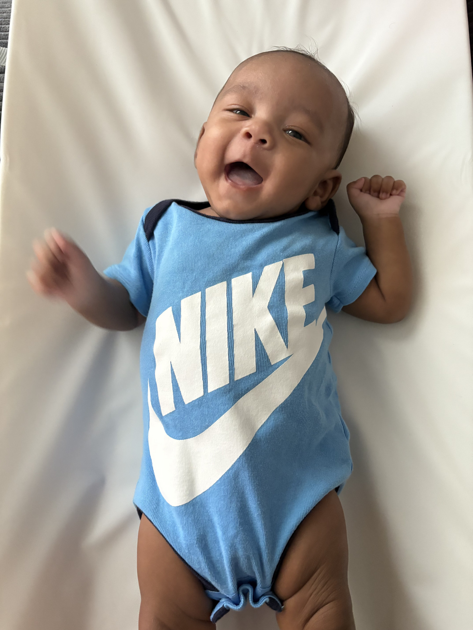 Jayce only being 4 months old he’s got a very big personality! I even think he’s starting to say Hi already! He loves everyone that he comes in contact with. Always smiling and tries to interact back. Jayce has these random bursts of energy and starts yapping away until he’s tired. He’s starting to show more personality every day as he grows, making funny facial expressions, following movements with his eyes, and being the baby he is!