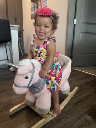 What are Jenesis's favorite activities?Jenesis is a NATURE BUG! We go outside to the parks early to beat the heat. She loves mocking animal sounds and playing with her pet kitty and pup! She loves playing with her books and toys (AKA destroying the living room). She’s also enjoying trying new foods and learning new words. And she is always on a secret mission to grab the TV remote.