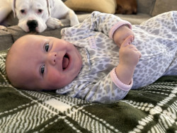 What are Jocelyn Newkirk's favorite activities?She loves snuggling, Bath time, laughing, “talking”, reading books, watching baby Einstein, going for walks in her stroller, giving her doggie kisses, playing peek an boo, spending time with her big siblings & eating people food.