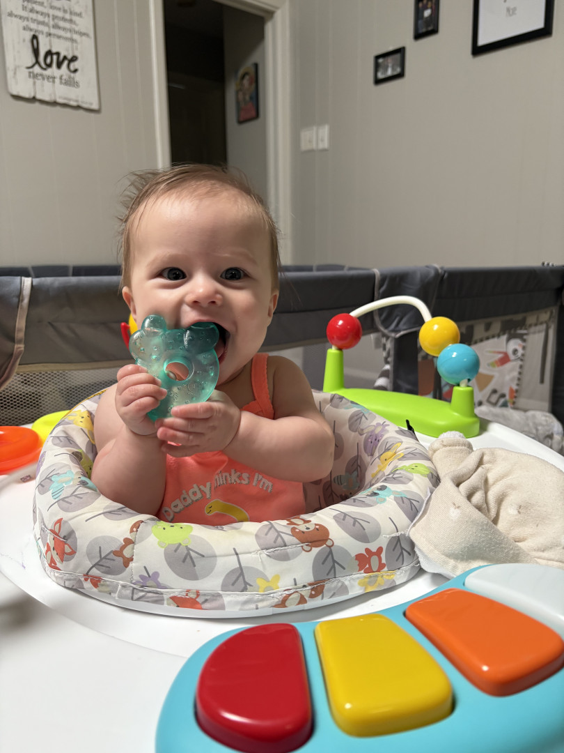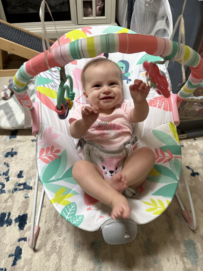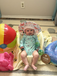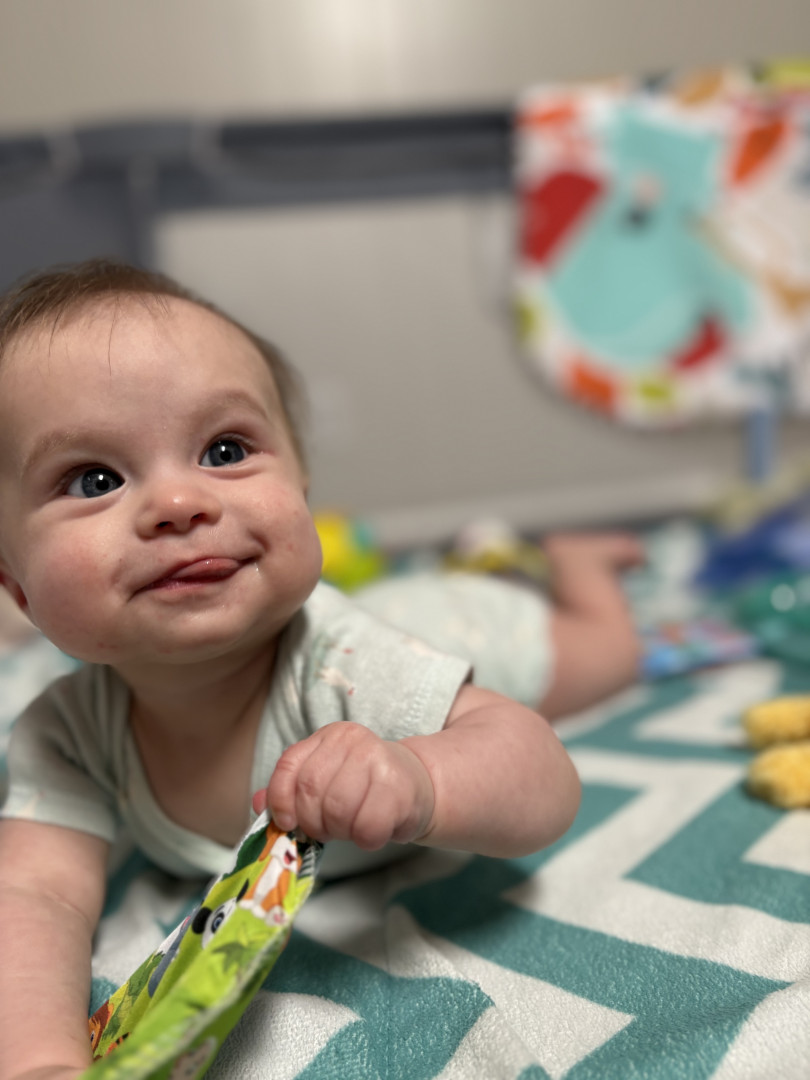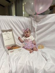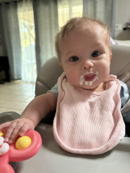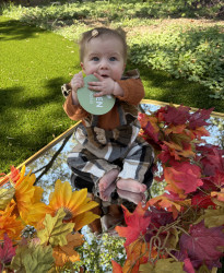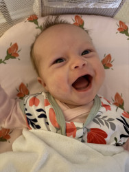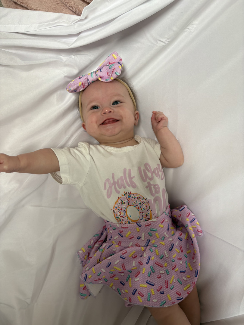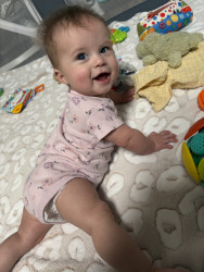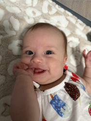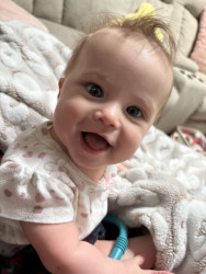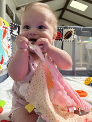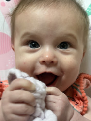 She is a loving and happy baby who loves to smile, laugh, and blow raspberries. With her blueish eyes, beautiful smile, and bubbly personality, she has her parents wrapped around her finger!