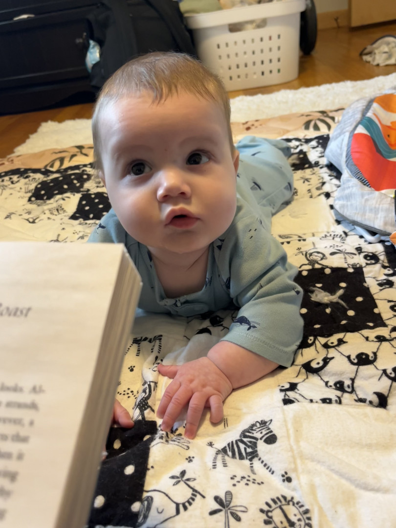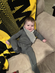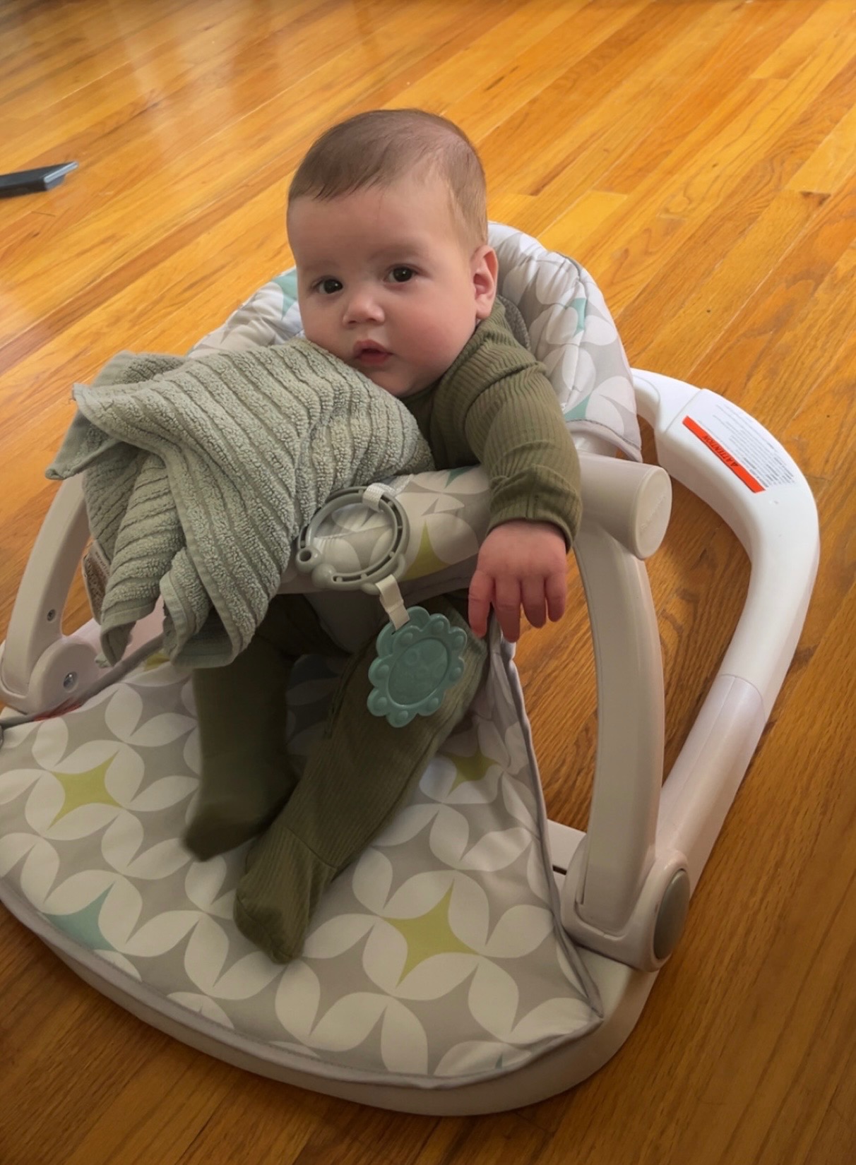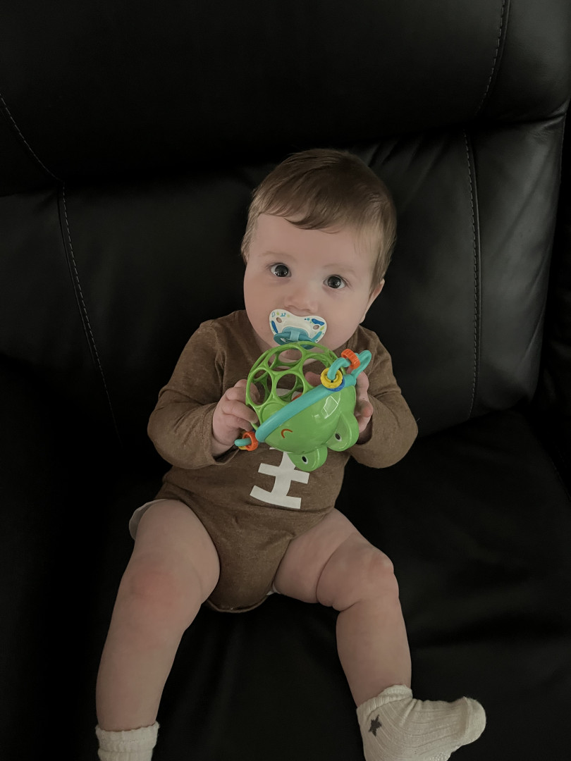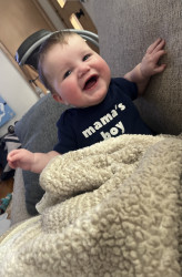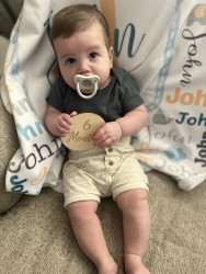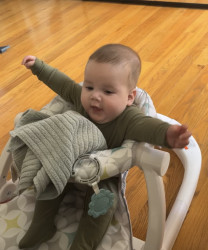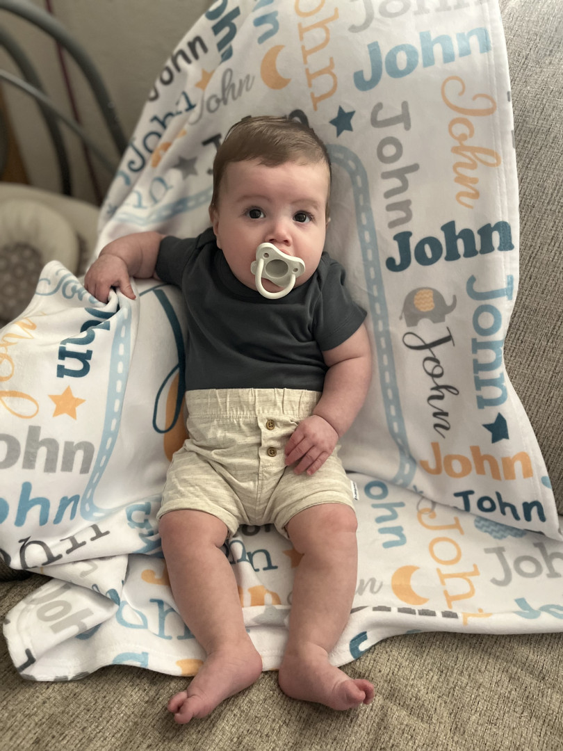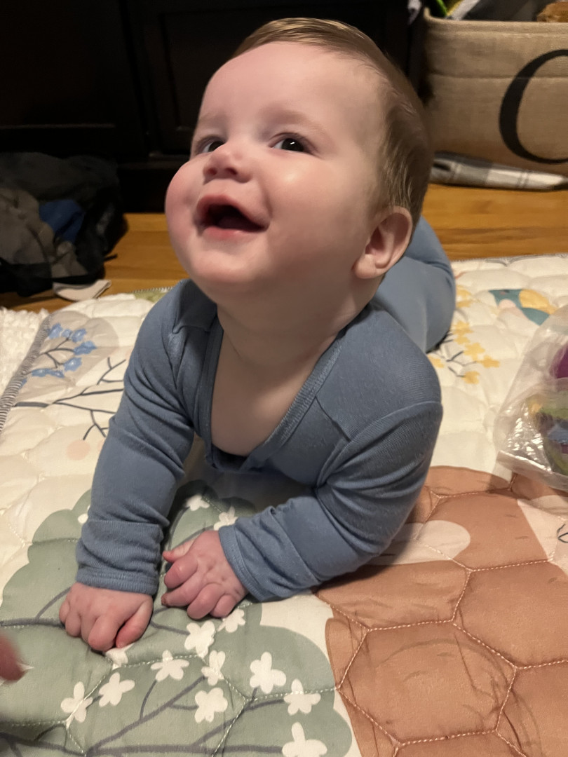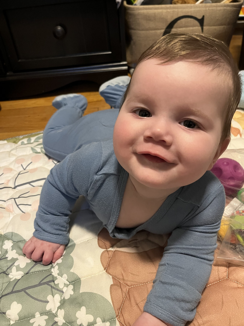 John is always smiling, he is a very vocal and loves doing his loud smiley screams! You can always hear his baby talk even when he gnaws on his hands and toys. John loves being around family and friends of all ages. Mr. Smirks a lot is a very chill baby and is super curious now that he can army crawl. He adores soft singing music & musical toys especially now the more he finds his voice. John loves his reflection and looking in the mirror as he is still looking for a mirror he doesn’t like haha.