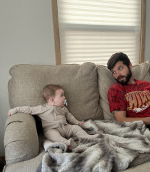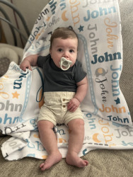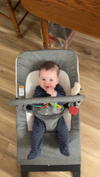 What are John Cain's favorite activities?John enjoys his musical mirror and learning piano, although, his favorite thing to do is cuddle and take naps with Mom and Dad. He enjoys his water play mat, activity center and walks. He is very attentive when we read books to him as it is the best when he tries talking to you with his wild facial expressions which are priceless. He loves sitting in his bouncer when we cook since he loves to eat! John just enjoys being a part of everything, which makes everything better!