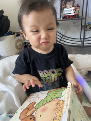 Johnny loves to play with his big brother, loves to listen to music and most of all read his books :)