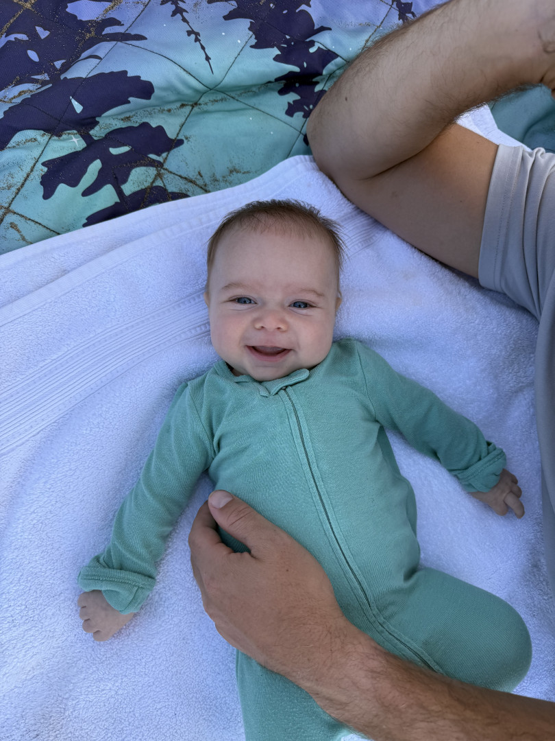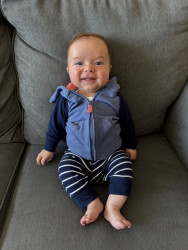 Jordan is such a chill and happy baby. He’s very easygoing and always content to go with the flow and partake in family adventures. He loves to smile, giggle, and coo, especially when he’s interacting with others. Even at just 3 months old, he’s already so expressive; if you smile at him, he’ll almost always beam right back at you. He’s curious, social, and already brings so much joy to everyone around him.
