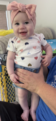 Josephine has severe FOMO. She has to be sitting up, or standing with assistance. Hiccups are a daily occurrence, and forget swaddling, arms out ..