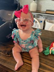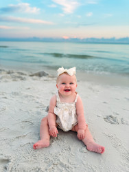 My baby should be bay of the year because she is a happy little chunky monkey!! Her smile lights up a room.