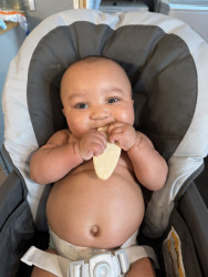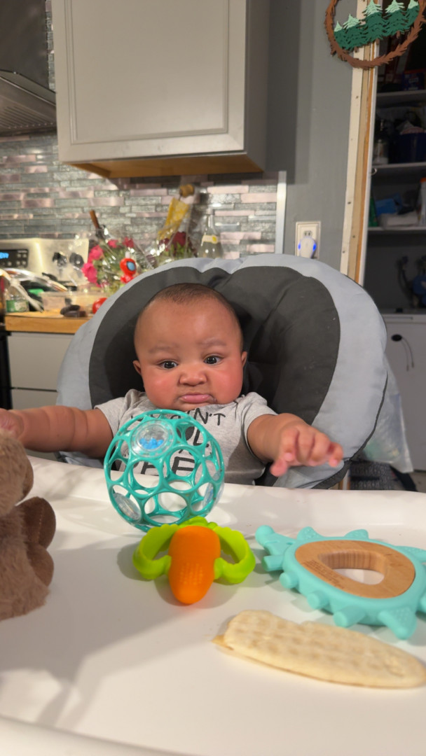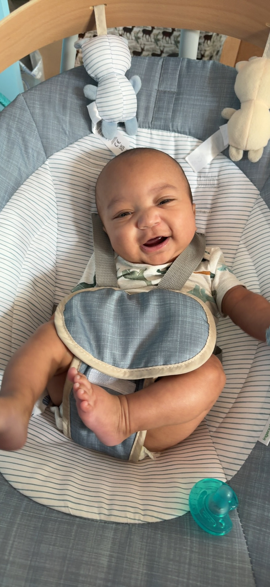 What are Journey's favorite activities?Journey loves bouncing in his bouncer, giggling nonstop while I laugh beside him. He adores his toy ball. We roll it back and forth, filling the room with laughter. His little stuffed horse is another favorite; he tries to “taste” it just like his ball! He’s a big foodie who lights up at mealtime, but I think his favorite moments are our cuddle times,snuggling close, watching a movie, and sharing pure love and joy together.