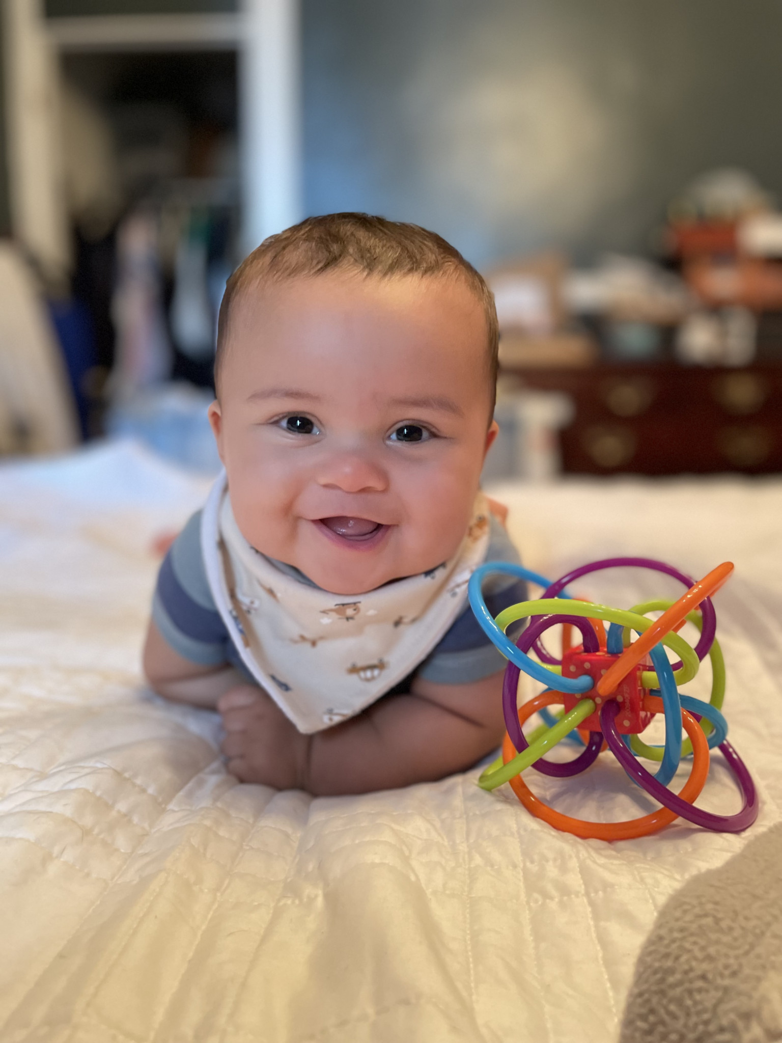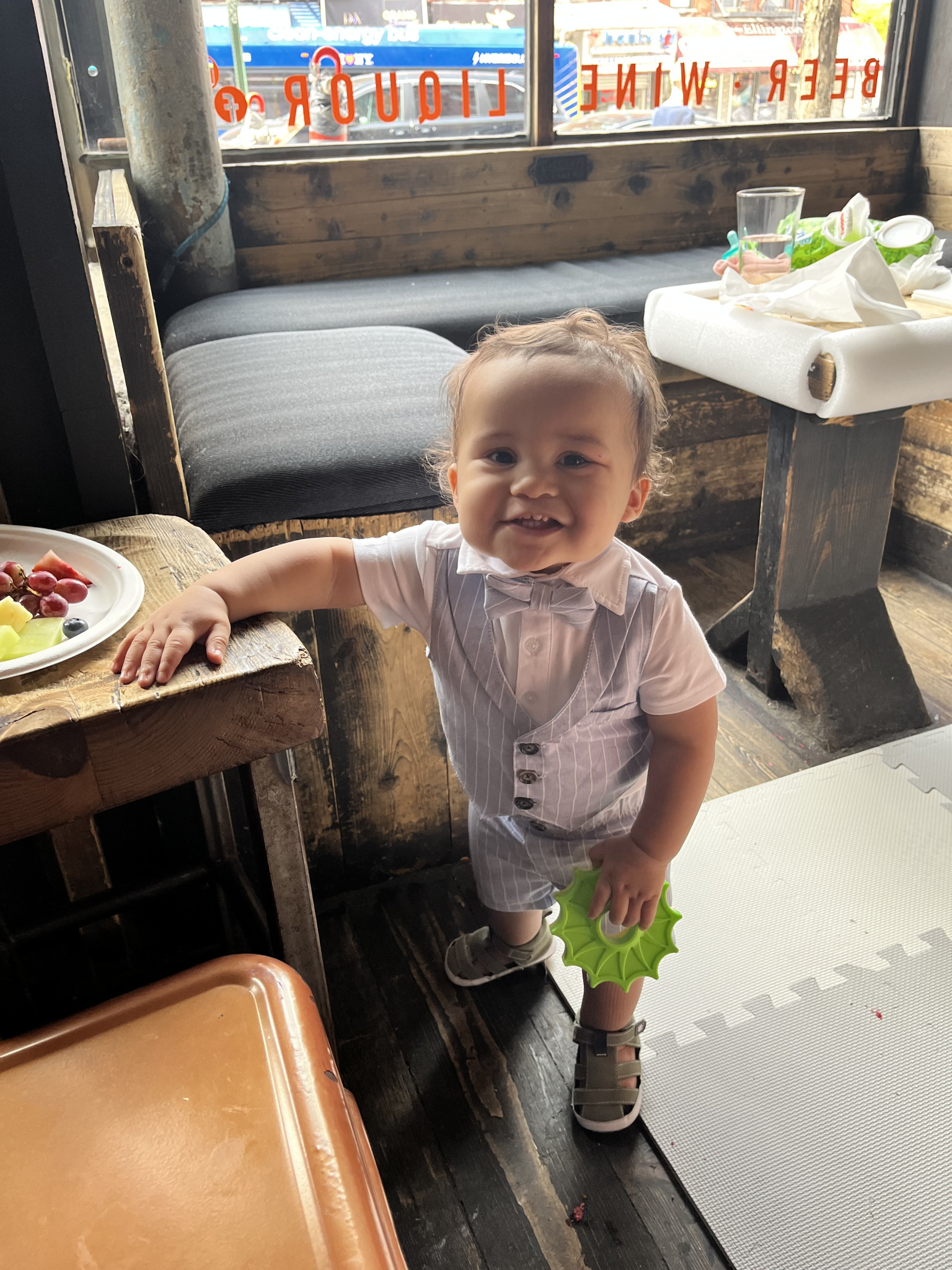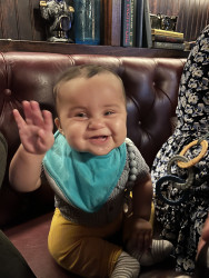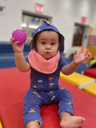 What are Julian's favorite activities?Julian loves to climb, give high fives, and play with a ball (one of his first words)! He loves music and copying dance moves as well as anything with motion—we bet he’ll love rollercoasters. He is also a big eater who loves bone marrow, cheese, and blueberries and will almost never say no to a snack. His favorite sign is “more” and he uses it often.