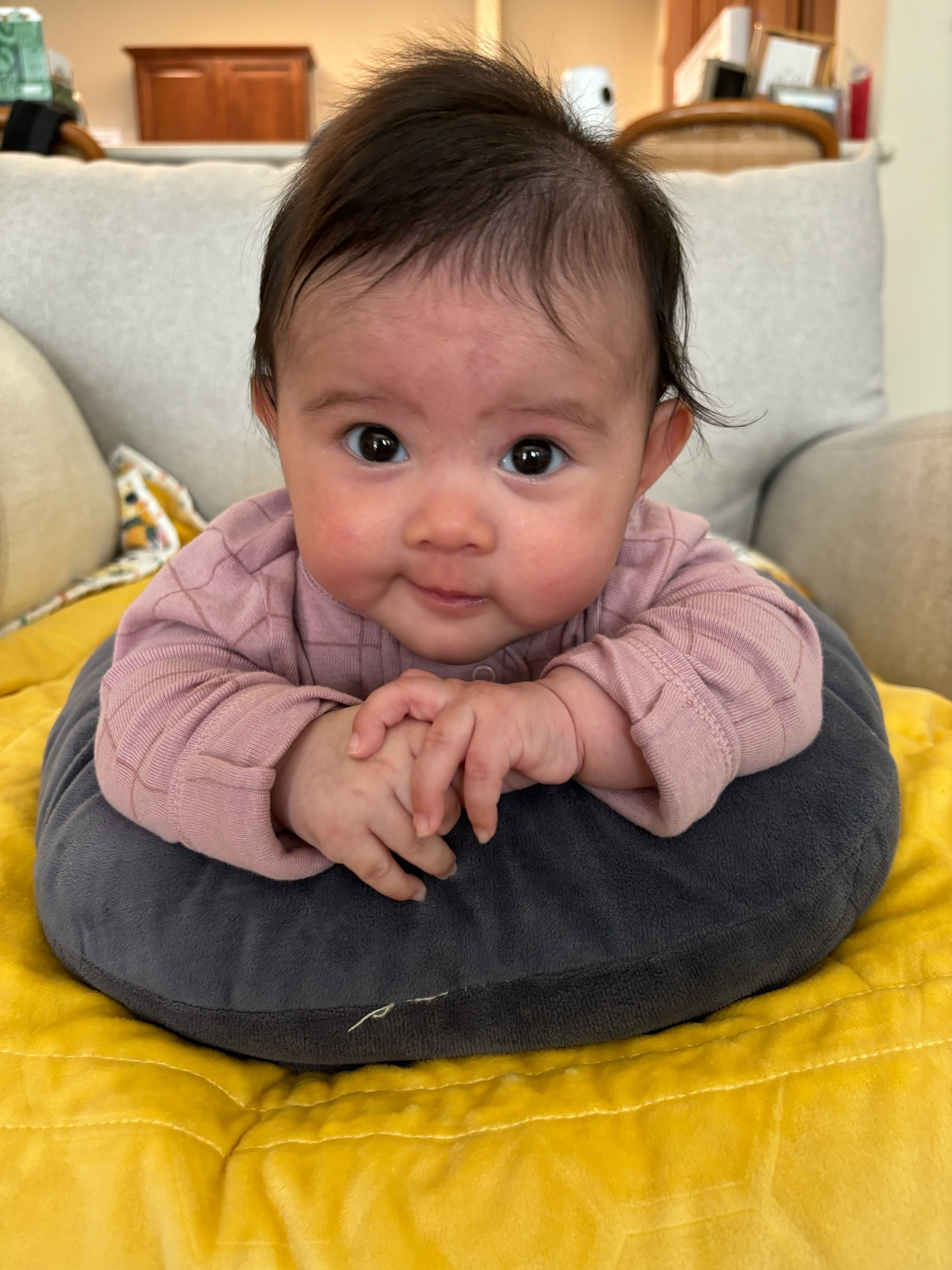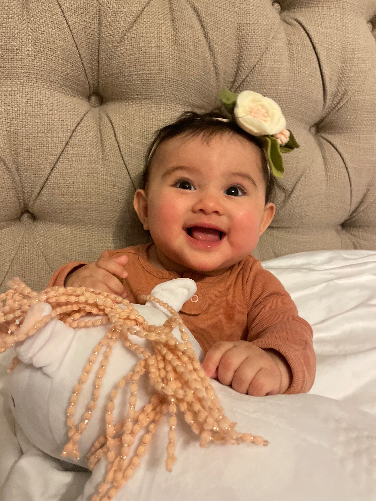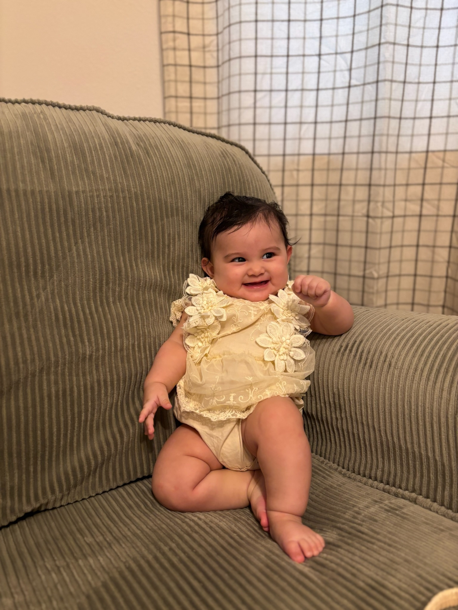 Nicknamed, Junie, she has an infectious smile that warms every heart. Junie is joyful and enjoys being around her family. She’s still learning to eat solids, recently just got her two bottom teeth, and can bravely take two steps on her own.