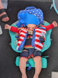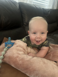 Kace loves everyone he meets and is the happiest baby there is. He has so much love in his heart and expresses it with so many hugs and kisses. He is a love bug!