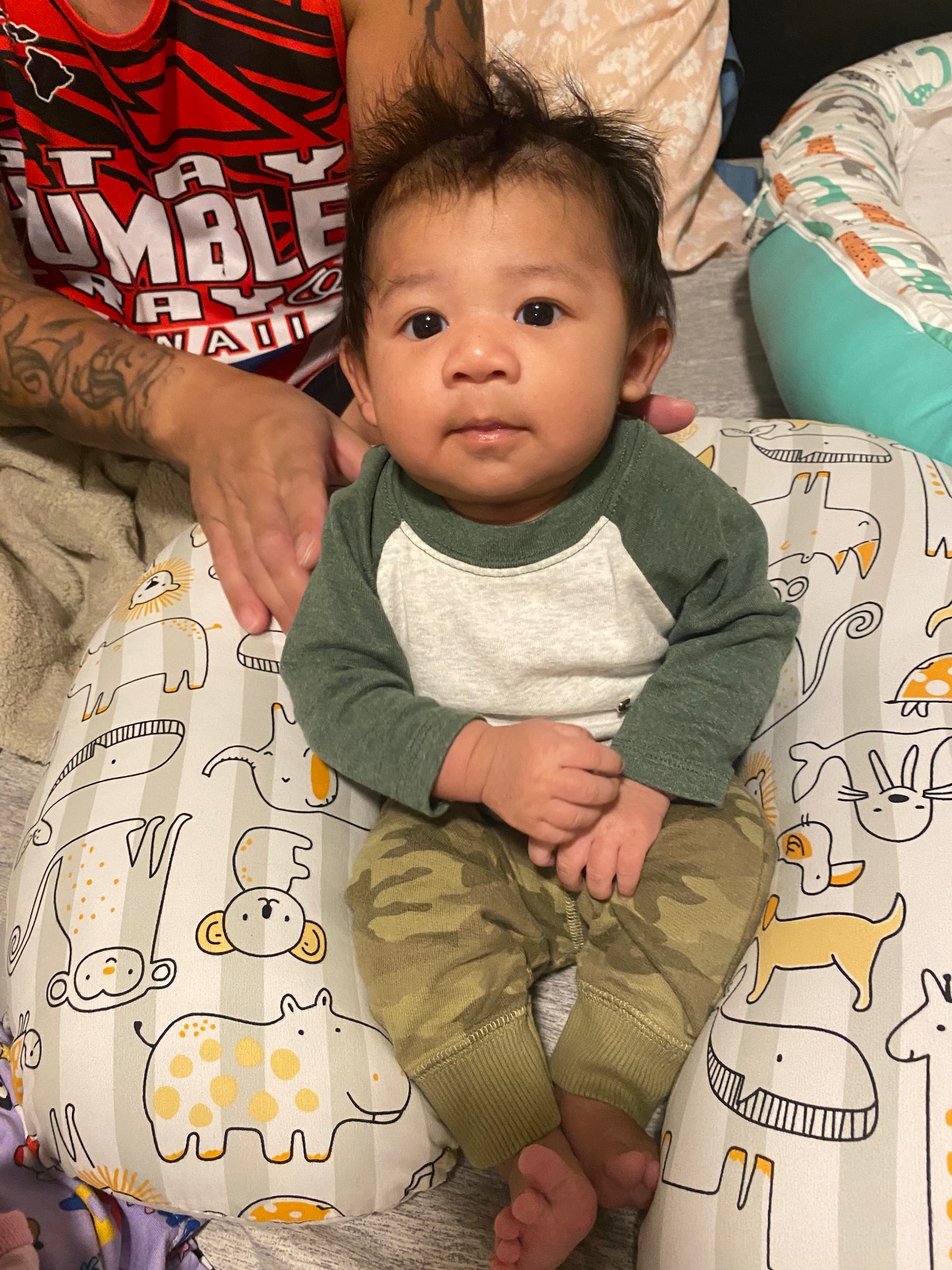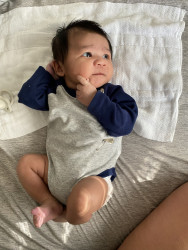 Kaezyn is very vocal. He mimics your sounds as if he talking stories with you. He's such a happy baby but could also have a little wild side when he gets hungry lol. For the most part, he likes to observe everything around him.