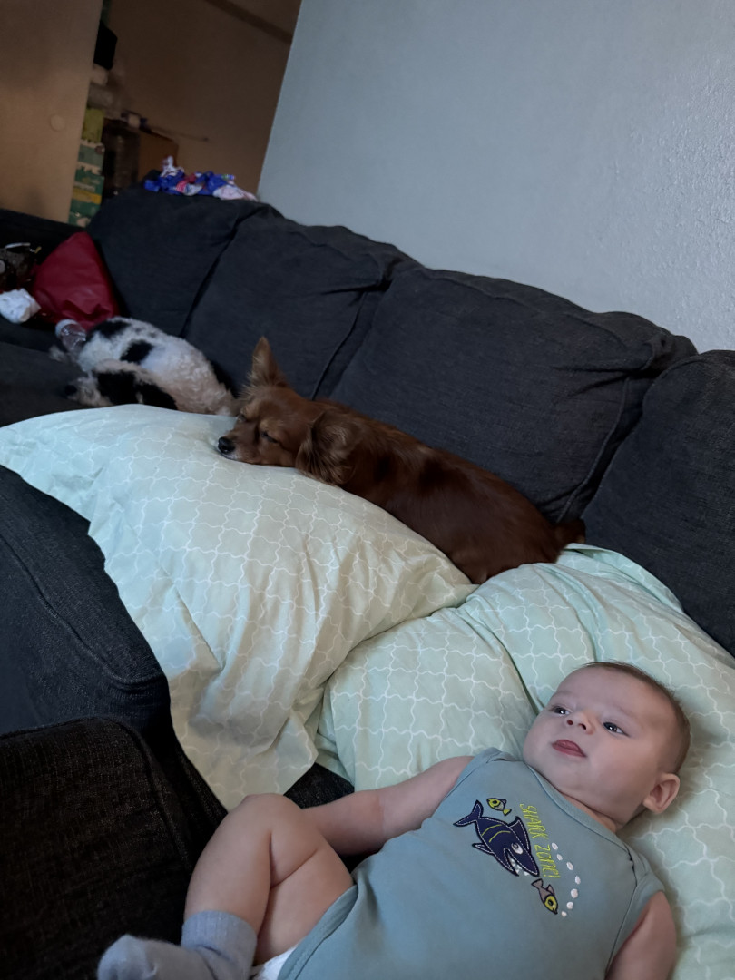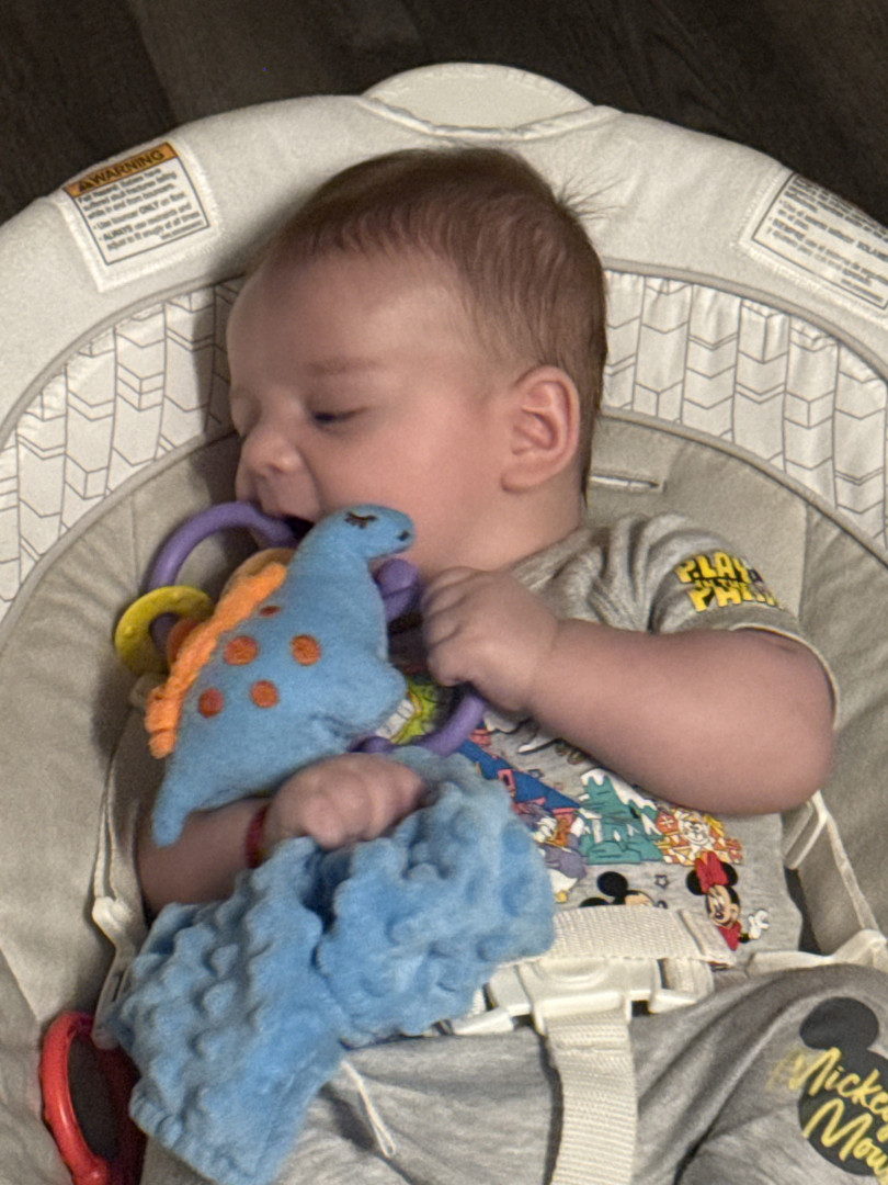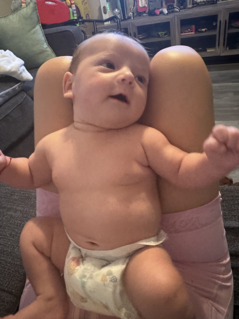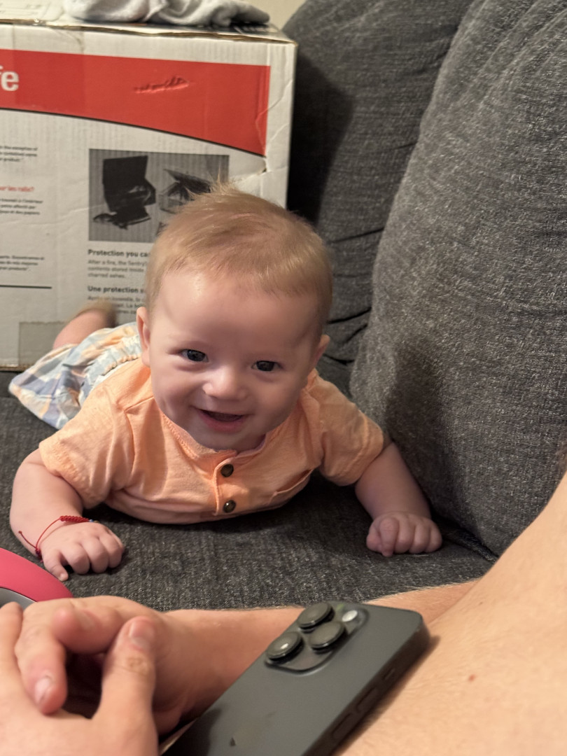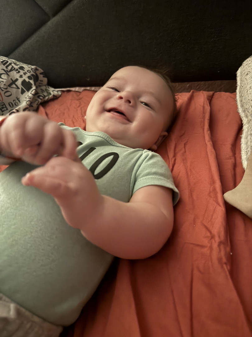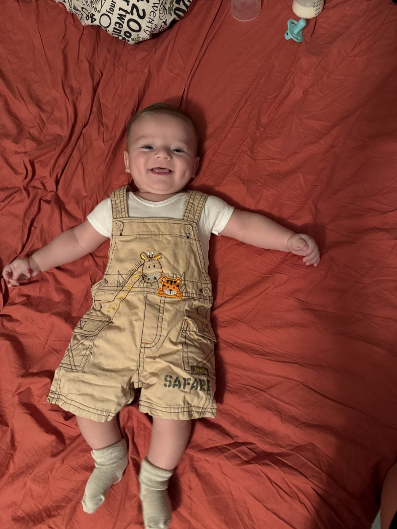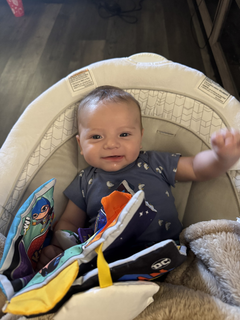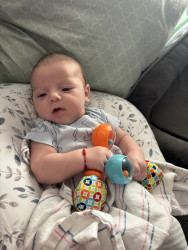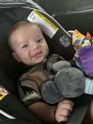 Kairo is a calm baby and doesn’t fuss, which me and his dad are so thankful to have such a good baby, he screams so much when he’s happy! And laughs and smiles all the time! He’s such a happy baby full of love and gets told how cute he is everywhere we go!