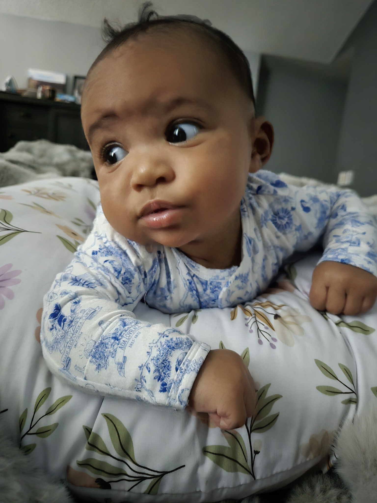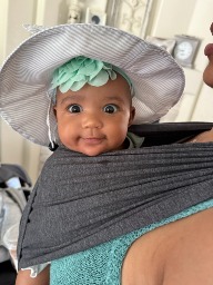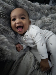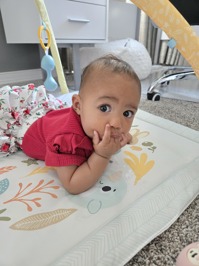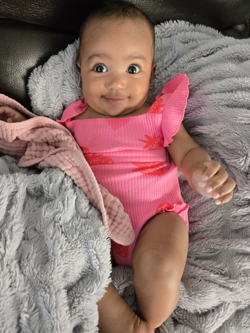 I'm consistently asked, "Is she always like this?" because Kairo is always happy, chill, and ready to go with the flow. She doesn't cry, she just yells at us...almost like a friendly reminder that she needs something. Her middle and ring fingers are her safe space, her nose scrunches when she smiles, and her belly laugh when you tickle her thighs is to die for. Kairo is the baby that parents dream to have!