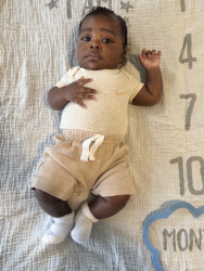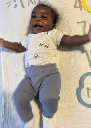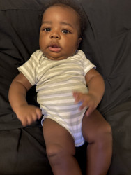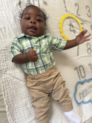 Kaisyn is such a happy baby. He is smiling at you before you even look up at him. When he wakes up the first thing he does is smile. It just warms your heart! He is also silly and makes every body laugh.