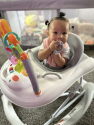 What are Kamryn's favorite activities?She’s already full of personality! Her two tiny teeth have become her favorite thing to show off, every smile is basically a debut. She’s determined to walk every chance she gets, and peek-a-boo could easily be an all-day event in her world. She keeps us laughing and amazed every single day