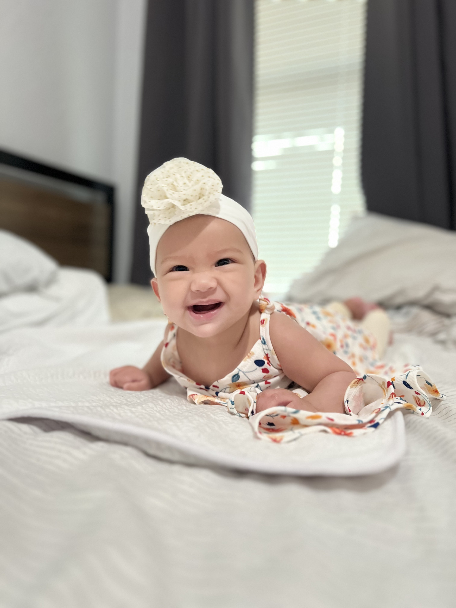 One opinionated baby. She will not shy away from letting anyone know when she is upset and definitely when she’s happy. Katalina loves it when she startles or “scares” people and playfully repeats whatever she did to get that reaction again. She has a lot to say the moment she wakes up,loves seeing herself in the mirror and the camera. She knows what she wants and what she doesn’t, at an early age she makes definitive choices. She’s slowly becoming a social butterfly.