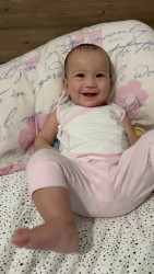 What are Katalina Uy's favorite activities?Katalina loves to have her photos taken , will smile on cue for the camera, she loves Facetiming her family. She’s at the jump-every-chance-I-get phase and has so much energy. She loves to roll anywhere and every chance she gets. Katalina LOVES bath time and loves splashing water most of the time, and to simply chill at times.