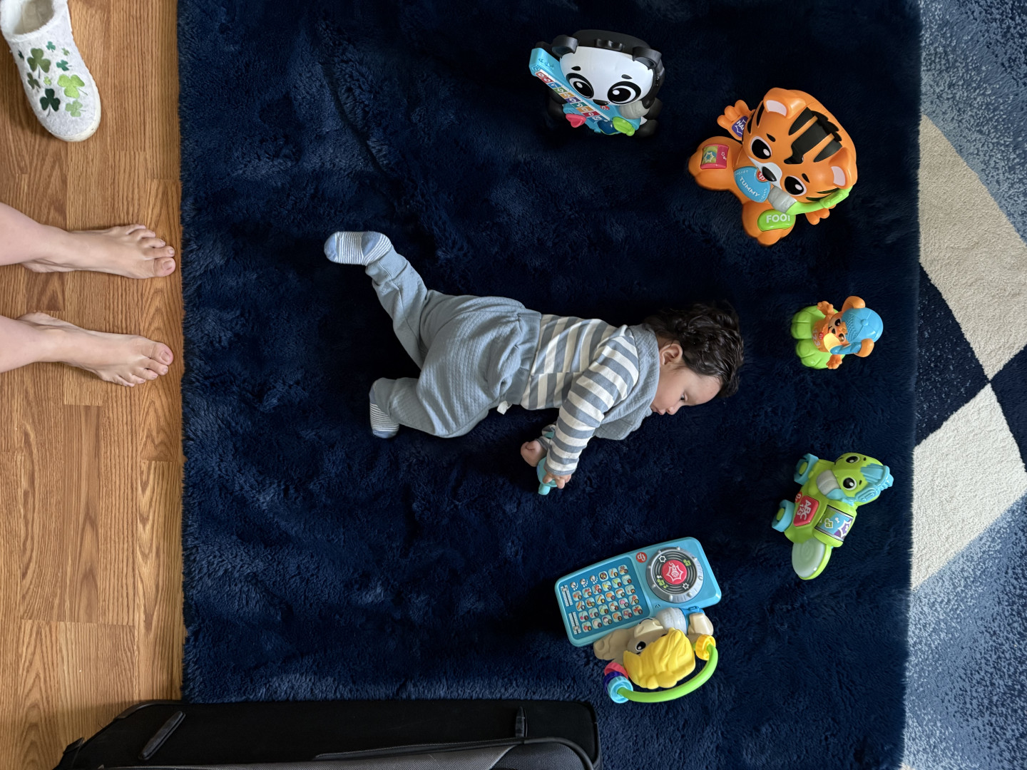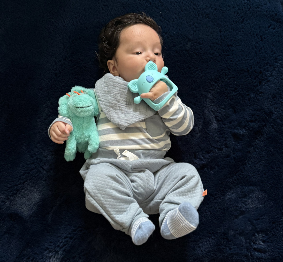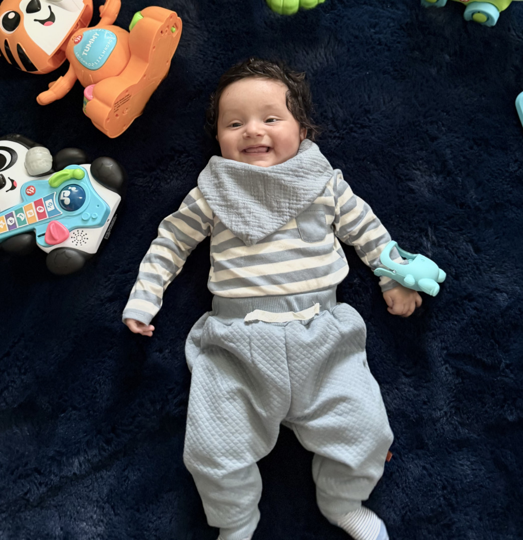 What are Keelan Villavicencio's favorite activities?Keelan likes to play in his gym, he likes to be told a story, to be carried in arms facing forward, especially in nature because he really likes trees. My baby is currently five months old, and his greatest achievement is turning over his toys and grabbing objects! He's still in the process.