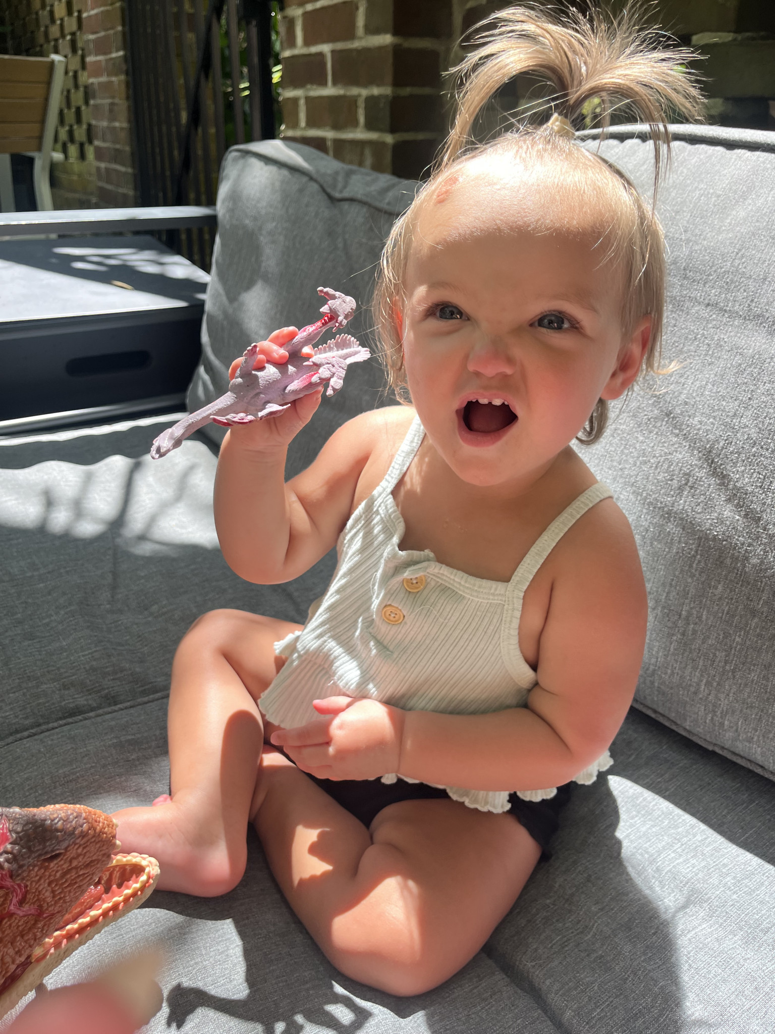 One of the happiest babies in town! Whether she's roaring like a dino or waving at everyone she sees, it always puts a smile on your face!
